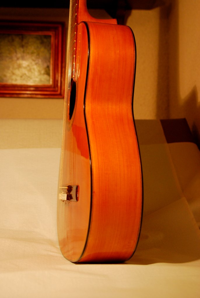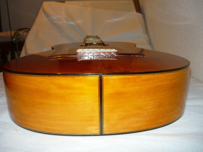 Σε καμία από τις κιθάρες μου έβαλα ενισχύσεις εκτός από τα τριγωνικά στηρίγματα 2-2,5 εκ μήκους και 7-8 χιλ πλάτους από mahogany  που έβαζε ο Τόρρες μεταξύ πλανών και καμαρών ( Cross struts) Μερικές από τις κιθάρες μου μπορεί να έφταναν μέχρι 1.3 χιλ ειδικά στη μέση Ο τρόπος κατασκευής Τόρρες με τα καμάρια πρώτα κολλημένα στο Lining και Untapered ( No scalloping στην άκρη ) και τελευταία κόλλαγε την πλάτη έκανε την κατασκευή απόλυτα δύσκαμπτη στην περιοχή Αυτού του είδους τα στηρίγματα χρησιμοποιήθηκαν σχεδόν από όλους τους γνωστούς κατασκευαστές της εποχής και όχι μόνο και χωρίς scalloping at the end (Αυτό χρησιμοποίησα και στα τρία μπουζούκια που έφτιαξα )¨Αν θα έφτιαχνα κιθάρα στυλ Τόρρες θα έπρεπε να ακολουθήσω όλες τις λεπτομέρειες  αλλά δεν είχα χρόνο για να φτιάξω την ίδια Ροζεττα και purflings Τώρα ο Ρομανίλλος κατασκευάζει τα καμάρια φαρδιά στις άκρες και να στενεύουν στο κέντρο. Ο Στέλιος που έχει δει κιθάρες Ρομανίλλος λέει ότι μερικές βγάζουν μάτι !!