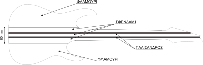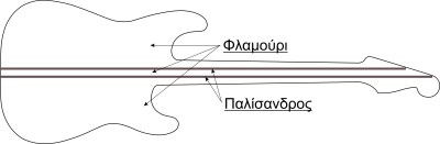 Θέλω να κάνω μια neckthru strat και το φλαμούρι να το χρησιμοποιήσω στο σώμα και στο λαιμό.Όπως το σκέφτομαι, στο λαιμό θα βάλω και δύο κόντρες 5mm από παλίσανδρο με φλαμούρι ανάμεσά τους (η βέργα δηλαδή θα μπει μέσα στο φλαμούρι). Επισυνάπτω και ένα σχέδιο με την σκέψη μου.