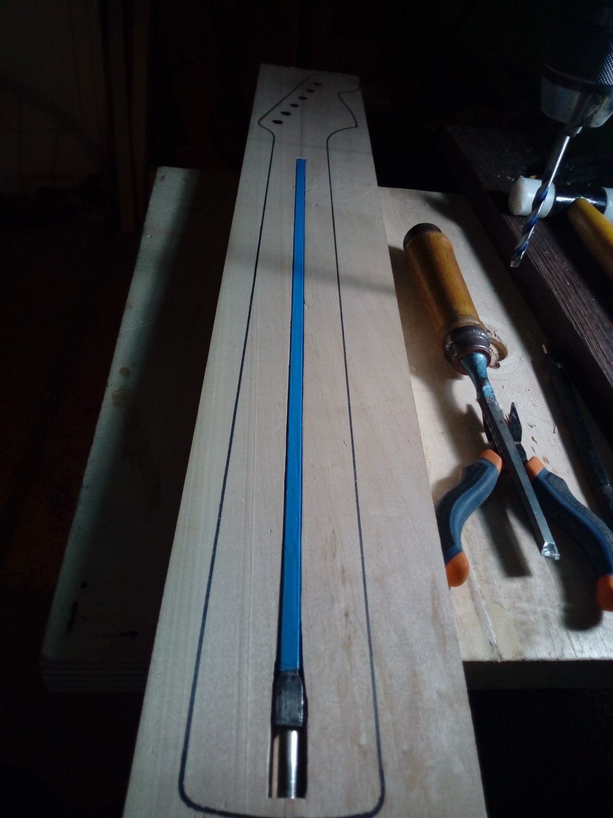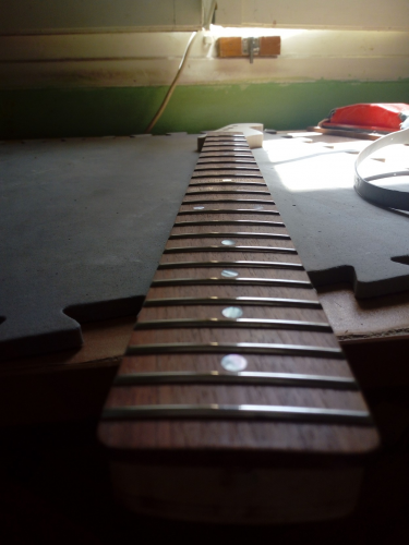 Μπράτσο maple με padauk ταστιέρα 12 radius και βέργα διπλής ρύθμισης . Τάστα jescar SS jumbo .