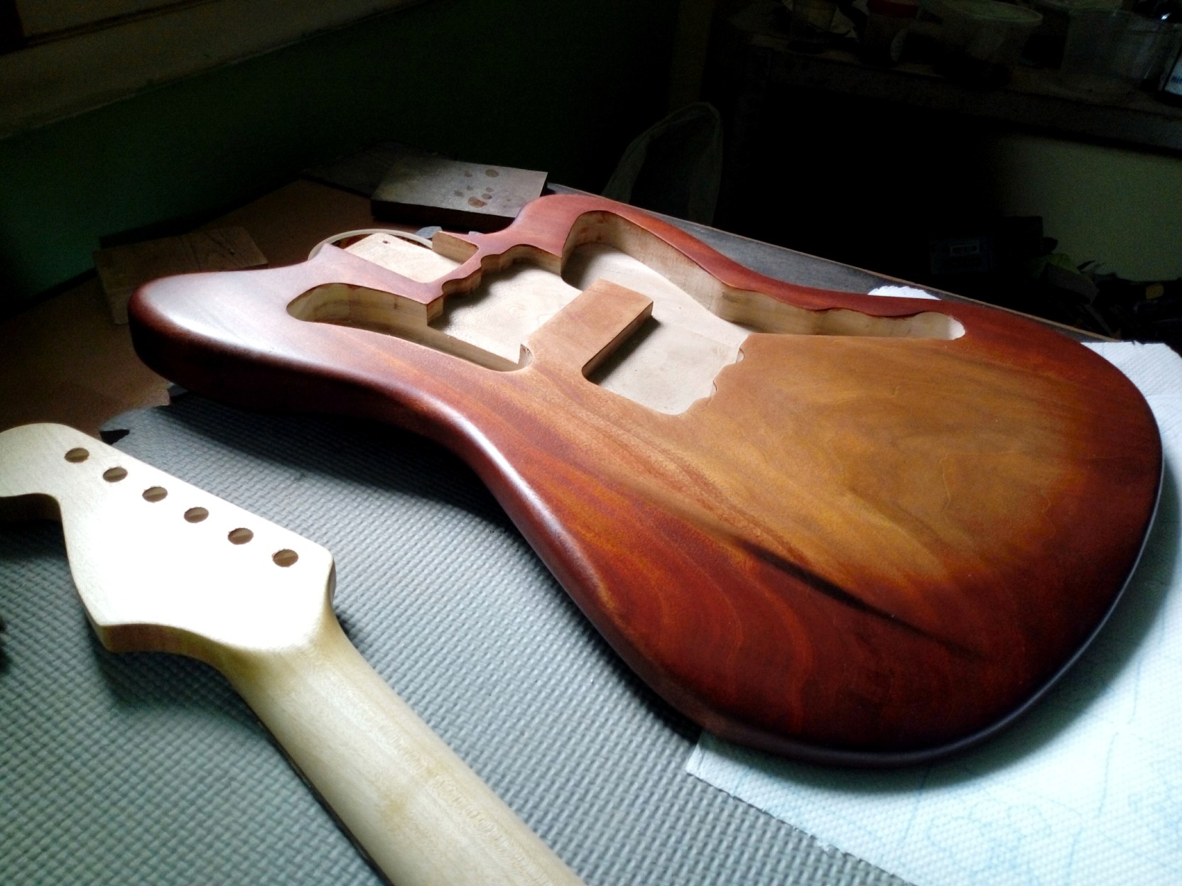Σώμα ένα κομμάτι poplar βαμμένο με εμποτισμού νερού και φινίρισμα true oil .