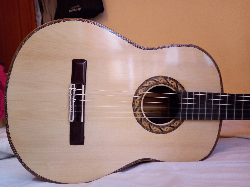 Κάποιες φώτο αφού η κατασκευή έφτασε στο τέλος της...πάντα με την βοήθεια σας ....όλα καλά..... όμορφος γλυκός ήχος(έλατο και πάλι έλατο) ....κάποιες διορθώσεις χρειάζονται στα τάστα μετά το 14ο(είναι λίγο πιο πάνω γιατί δεν μπήκαν τελείως βαθιά)