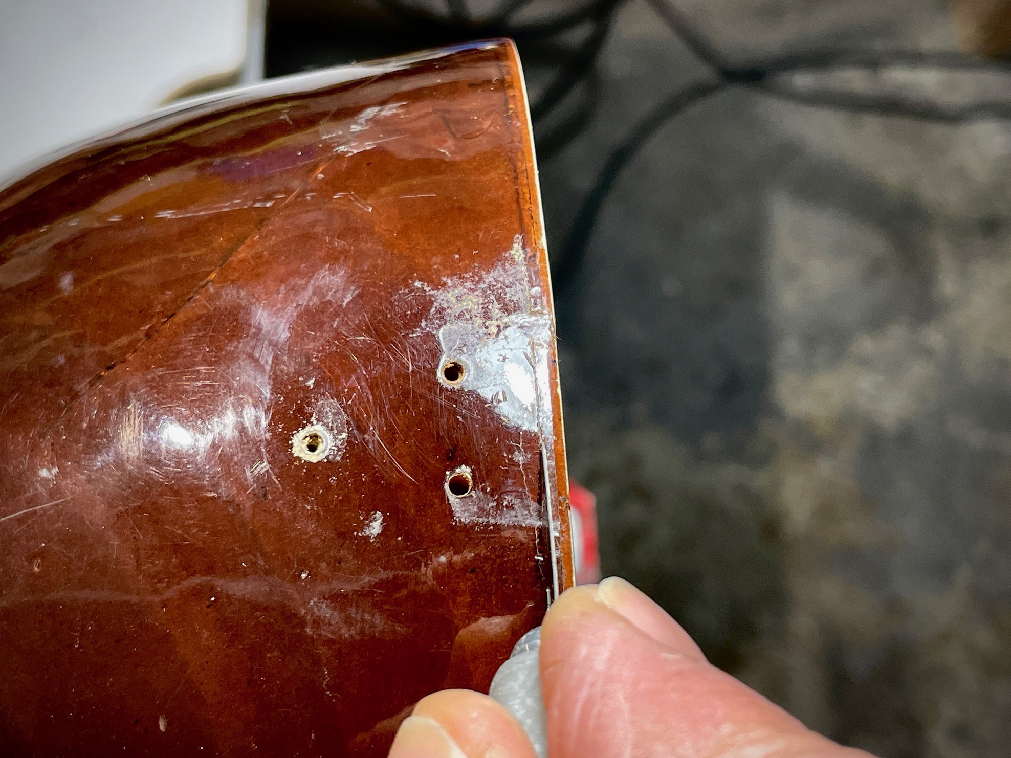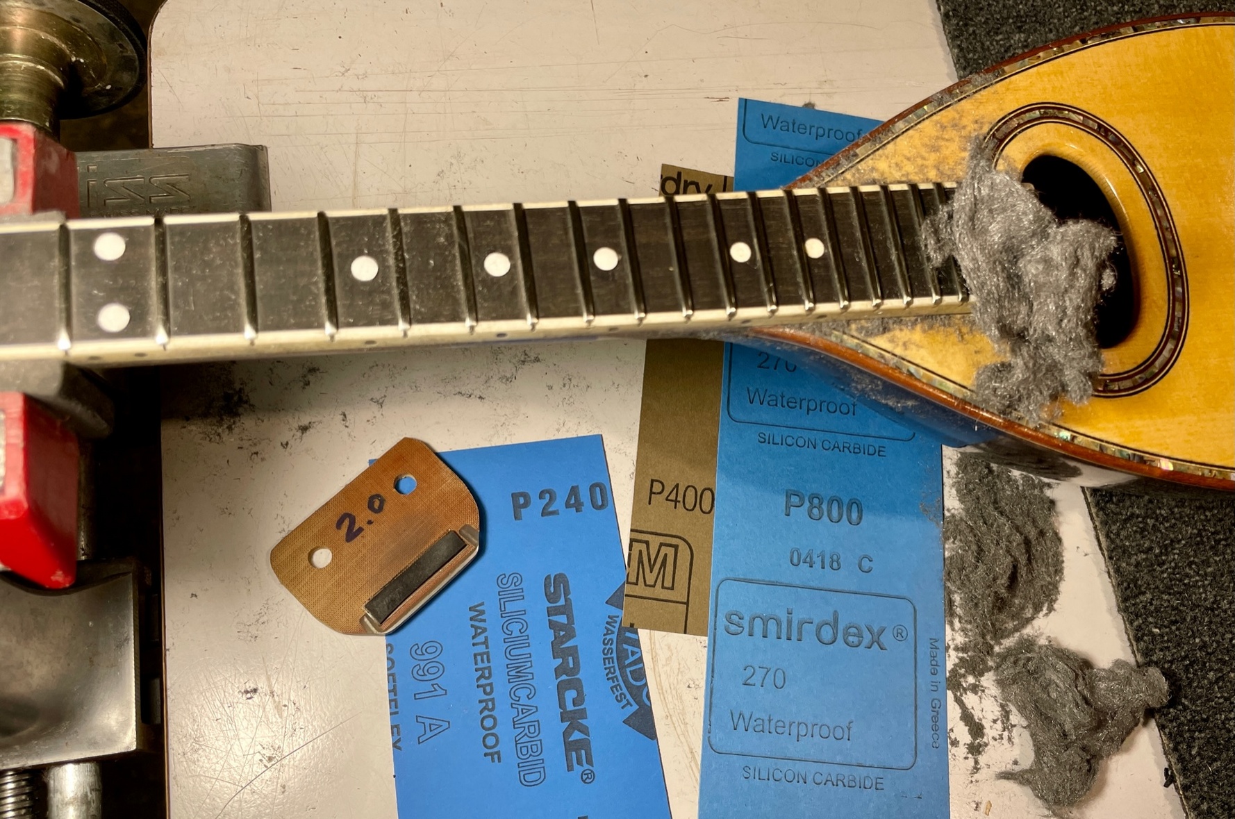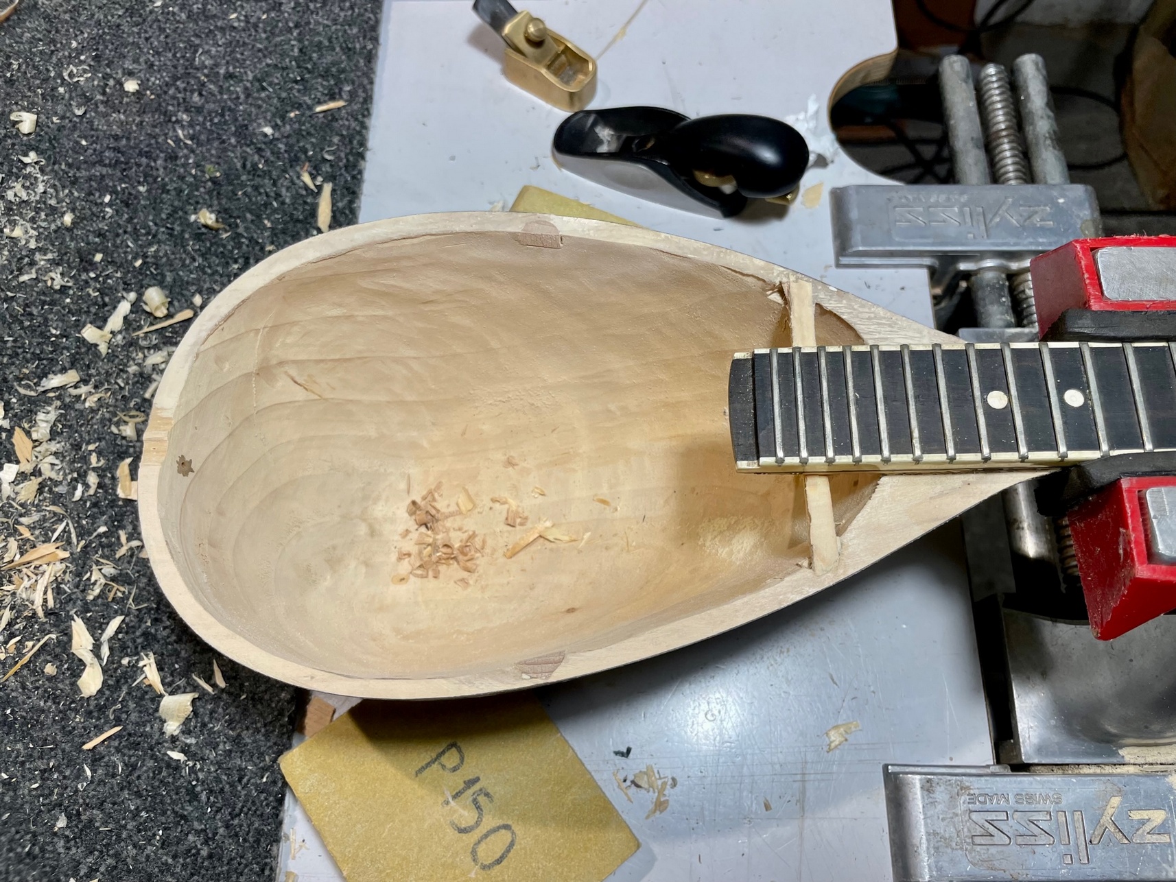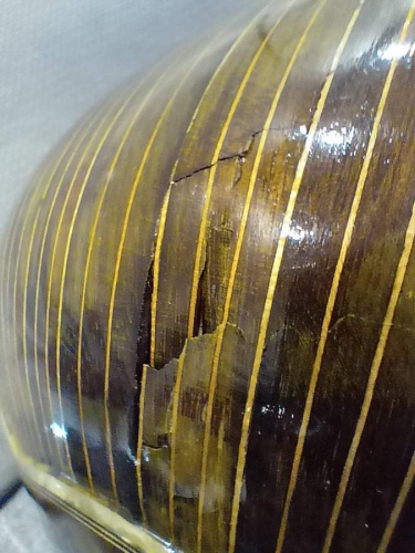 Ωστόσο, παρά τη χαμηλή τιμή του, ο σκαφτός τζουράς (θα τον έλεγες και τζουρο-μπαγλαμά) έπαιζε καλά πριν τη ζημιά όπως μου είπε ο φίλος μου. Σύμφωνα με πληροφορίες είχε κατασκευαστεί από σοβαρό οργανοποιό που προσπαθούσε να μπει στη συγκεκριμένη αγορά με πολύ χαμηλές τιμές. Και ήταν προφανής η προσπάθεια να κρατηθούν τα έξοδα παραγωγής χαμηλά… Στο φινίρισμα -ας πούμε- ξοδεύτηκε περιορισμένος χρόνος, τα τάστα για παράδειγμα είχαν επιπεδωθεί πρόχειρα αλλά προφανώς η πίεση για χαμηλή τιμή δεν επέτρεπε να ξοδευτούν περισσότερες εργατο-ώρες…