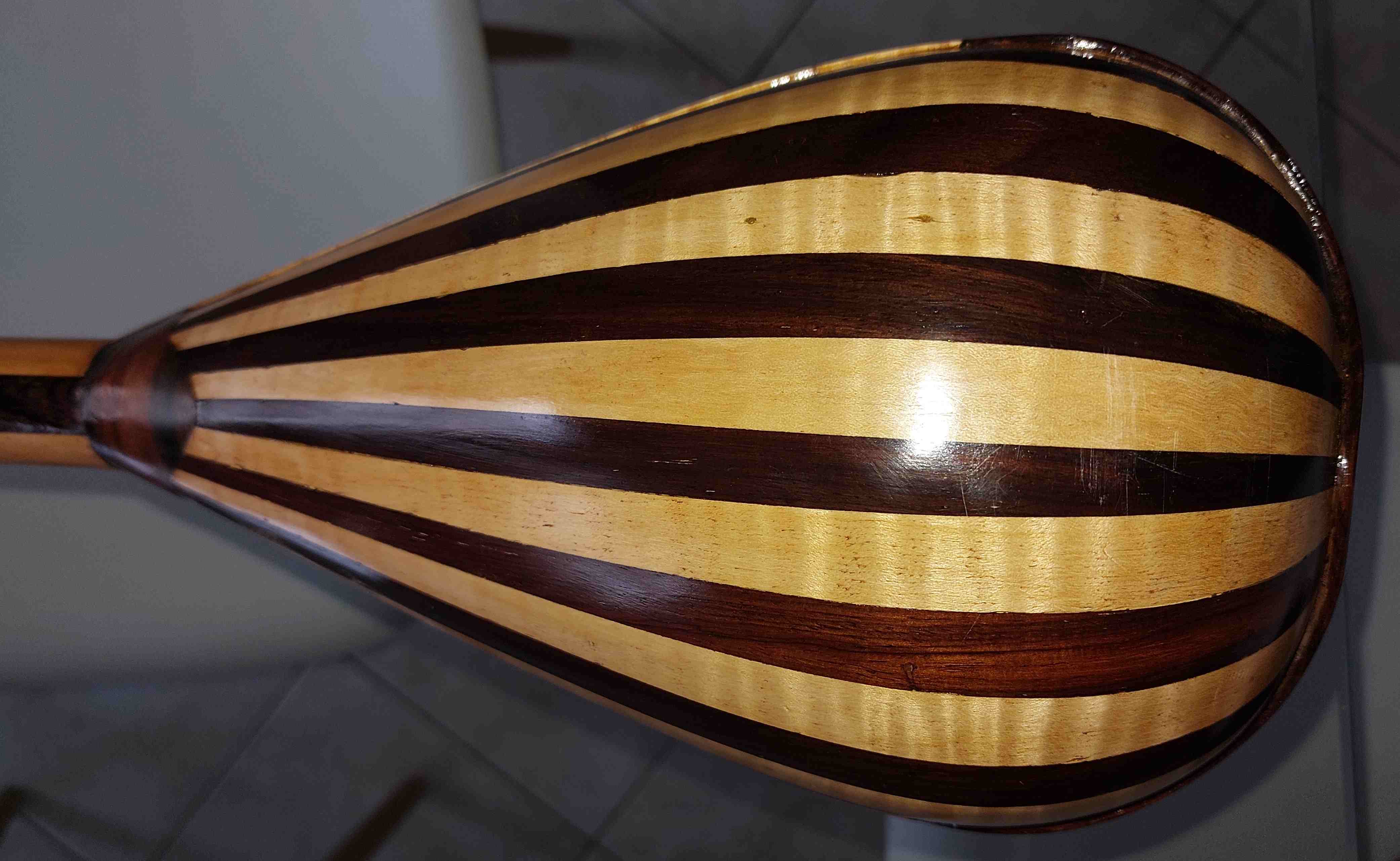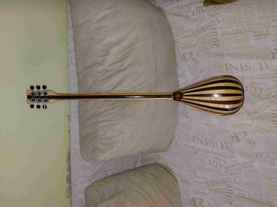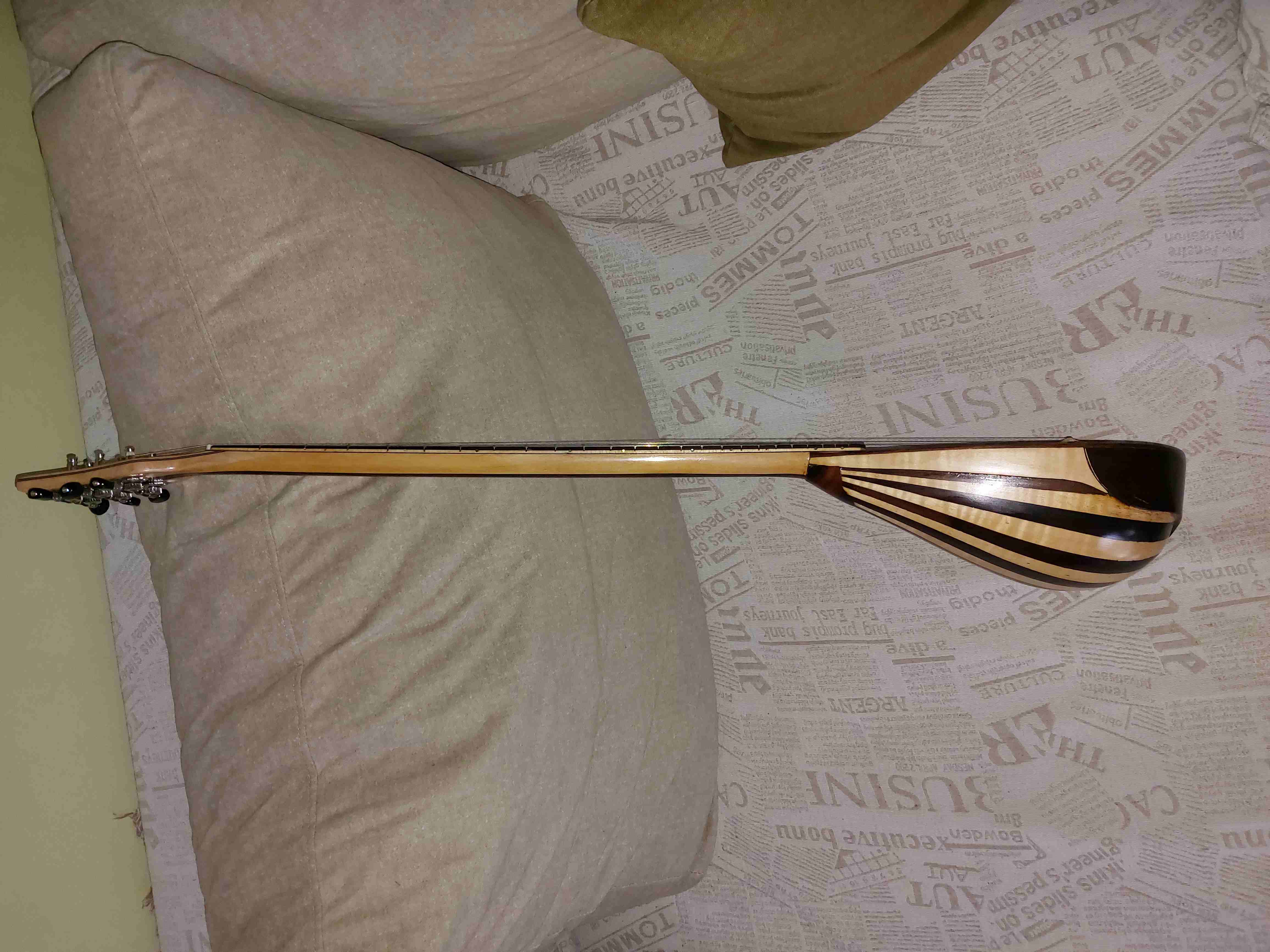 Το βασικό θέμα είναι πως το μάνικο πήρε. Παρόλο που είχα βάλει καλη κόντρα από βέγκε και απέξω φλαμούρι. Λογικά την πάτησα από την ταστιέρα. Περίμενα καλύτερη συμπεριφορά στο μάνικο οπότε είπα να δοκιμάσω για καθαρά λόγους εμφάνισης να την κάνω σάντουιτς, έβενος, κελεμπέκι σγουρό και μαύρο καπλαμά. Μου αρέσει το αποτέλεσμα που δίνει το σγουρό κελεμπέκι στο σόκορο. Το άφησα λίγο καιρό με χορδές να δω πως πάει και δεν είχε κάποια αλλαγή. Εν τω μεταξύ οι χορδές που πέρασα είναι μπουζουκιού όπως κάνω συνήθως στου τζουράδες και σίγουρα το ζορίζει παραπάνω λόγω της αδυναμίας του μπράτσου. Στην επόμενη αλλαγή (δεν θα αργήσει θα γίνει σύντομα μιας και έχουν ταλαιπωρηθεί) θα του βάλω χορδές τζουρά και ελπίζω να βελτιωθεί.  Παρόλο που το action είναι ψηλό και οι χορδές είναι μπουζουκιού το όργανο είναι πολύ μαλακό στο παίξιμο.