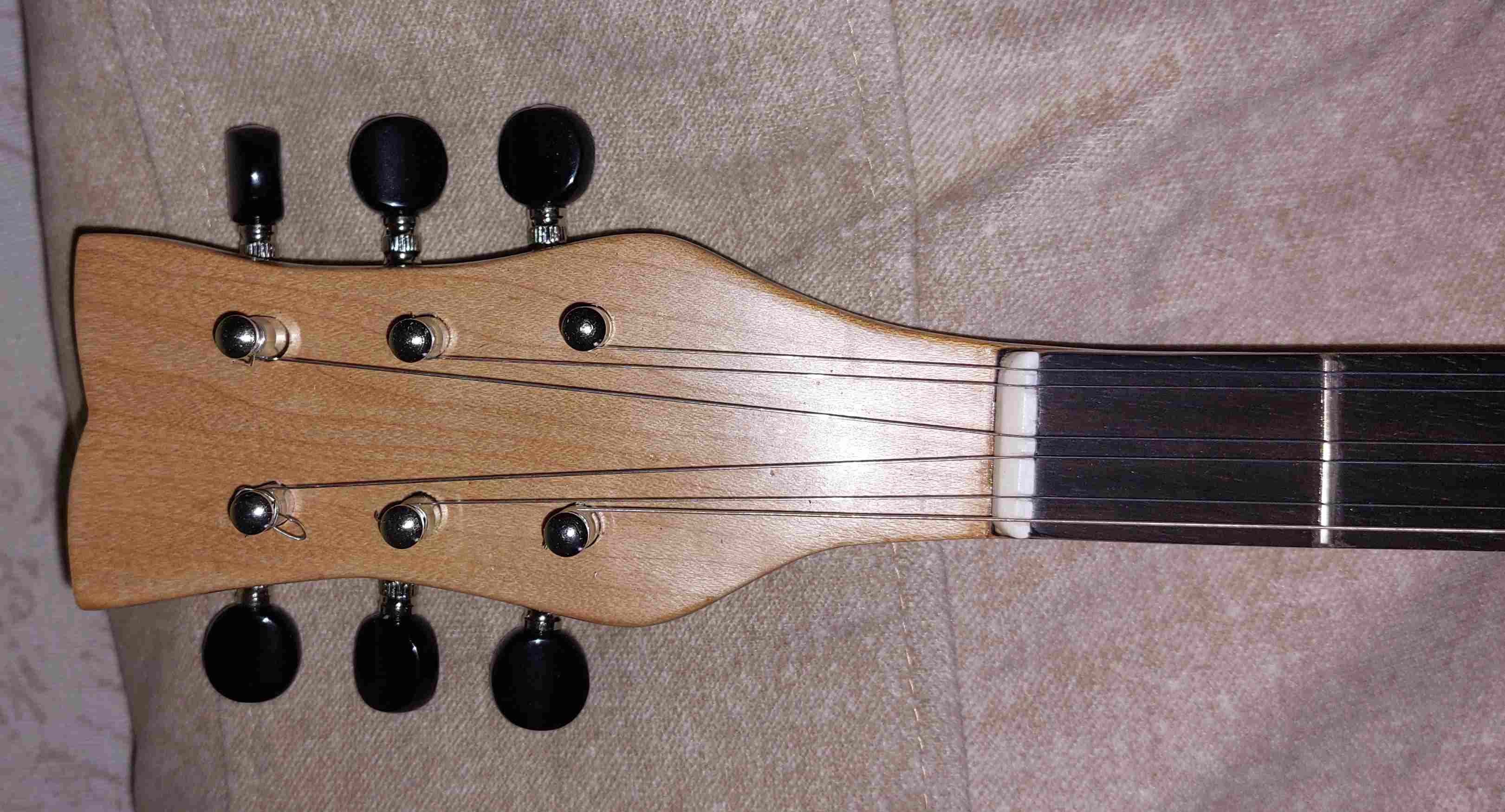 Μία ακόμα μικρή πατάτα είναι ότι έβαλα τα κλειδιά ανάποδα και οι χορδές σφίγγαν ανάποδα. Διορθώθηκε εύκολα αλλά άφησε δυο μικρές τρυπούλες στο πίσω μέρος του καράολου.