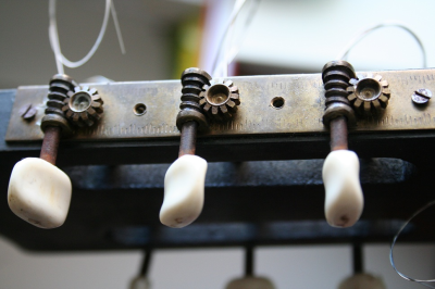 Η συντήρηση περιορίστηκε στο κόλλημα των τάστων με λίγο logo, κόκκαλο στο προσκέφαλο και καβαλάρη απο έβενο στη γέφυρα, καθάρισμα, και 8άρες χορδές ηλεκτρικής κιθάρας.