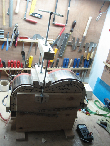 Επίσης μια απορία. Η όλη κατασκευή φαίνεται προσαρμοσμένη σε ένα και μοναδικό καλούπι. Αν πρόκειται για σύστημα που θα λυγίζει πλαϊνά για μόνο ένα μοντέλο-μέγεθος κιθάρας όλα καλά. Αν όμως χρειαστεί να λυγιστούν ξύλα για άλλο μοντέλο τι γίνεται;