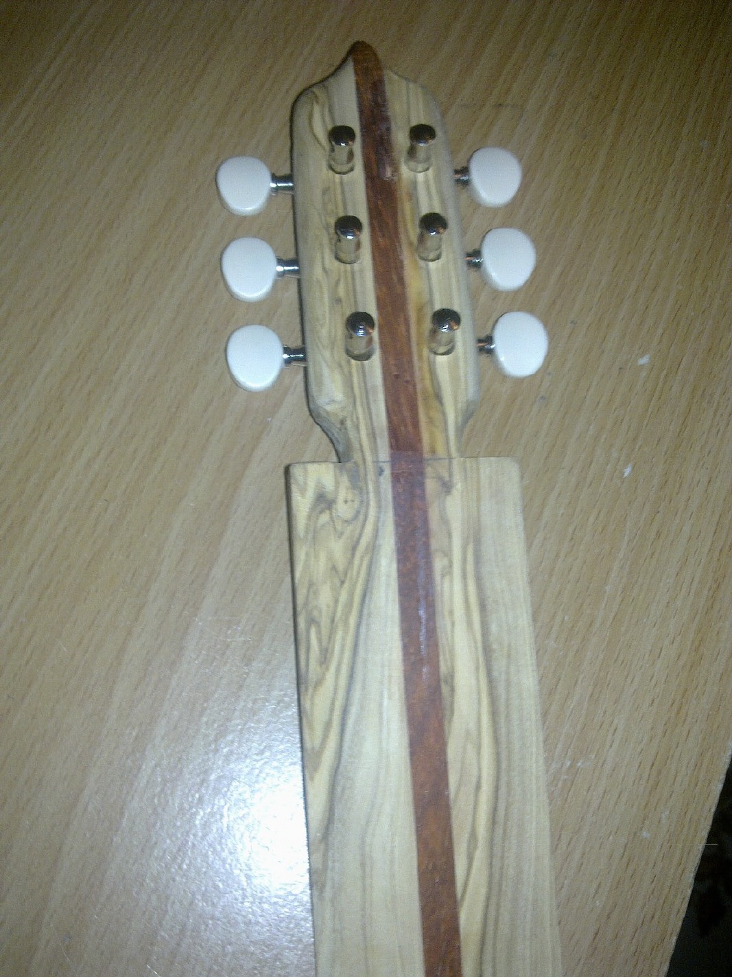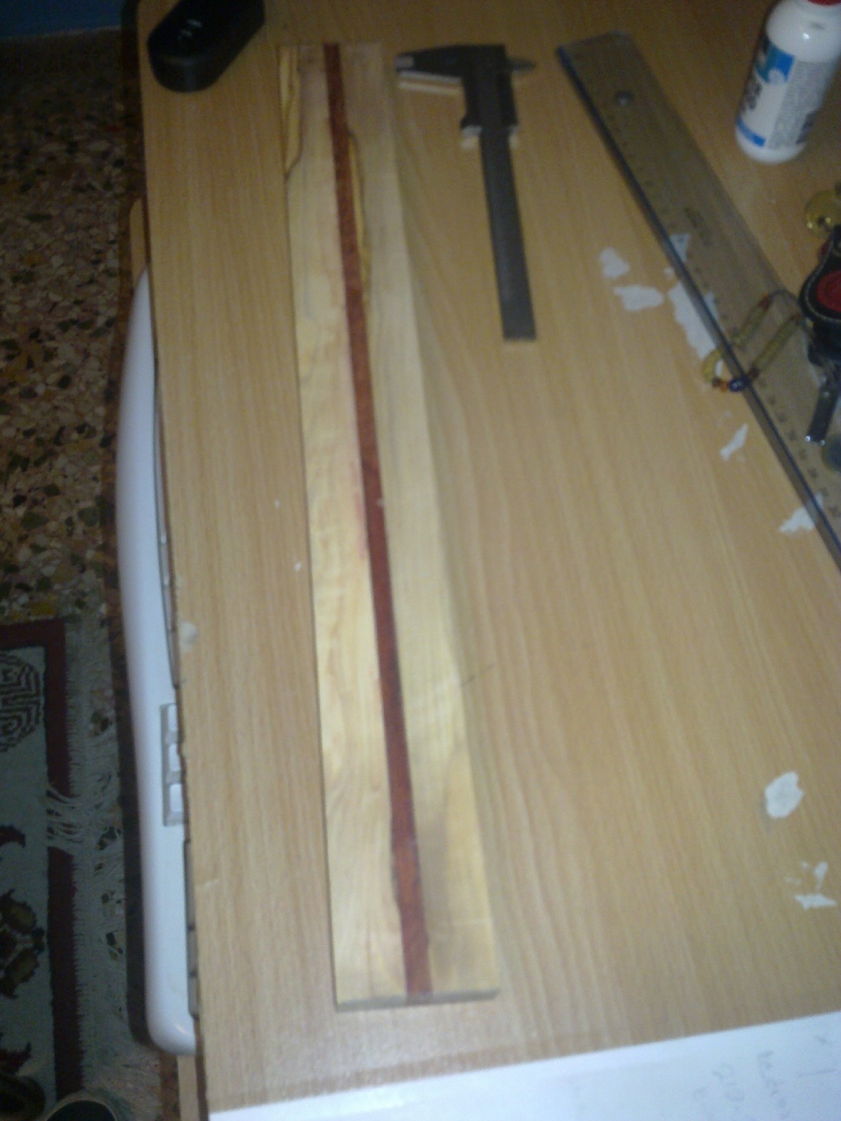 Το μεγαλύτερο μου πρόβλημα είναι ότι δεν έχω κορδέλα, με το χέρι και άσσος να είσαι θα ξεφύγεις και στα όργανα τα χιλιοστά είναι όλη η ουσία. Στην κατασκευή μου σίγουρα έχω ξεφύγει δεν υπάρχει αμφιβολία, το θέμα είναι να μην είναι τραγικές οι αποκλίσεις και δεν πατάει πουθενά το όργανο. Με πολύ προσεκτικό μέτρημα, πολύ προσοχή στα κοψίματα και τις κολλήσεις ως τώρα έχει γίνει μια καλή δουλειά, οπτικά τουλάχιστον δεν φαίνετε στραβό, αλλά στο τέλος ξυρίζουν τον γαμπρό λέει η παροιμία, μόλις μπουν οι χορδές πάνω θα δω και τα στραβά που έχω κάνει, τουλάχιστον να παίξει, αυτό θέλω μόνο, μετά θα κάνω και καλύτερο.