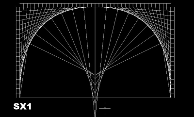 Στο τρίτο σχέδιο ( SX3) φαίνονται μόνο τα περιγράμματα των ντουγιών, (αφού έσβησα τις μεσοκαθέτους) και στο τέταρτο (SX4) η μορφή των ντουγιών μετά τα σχετικά κοψίματα και η απόσταση του τελειώματος της περιοχής σύγκλισης από την χορδιέρα που προκύπτει 4,17 εκατοστά περίπου.