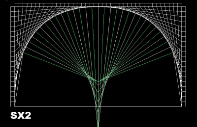 Στο δεύτερο (SX2) φαίνονται οι μεσοκάθετοι και το περίγραμμα των  ντουγιών (ντούγιες πράσινο χρώμα). Το κάθε περίγραμμα τερματίζει στο σημείο τομής της προηγούμενης με την επόμενη μεσοκάθετο (δηλαδή αυτών των μεσοκαθέτων που έχουν περιεχόμενο το περίγραμμα της ντούγας), μιας και τα σημεία τομής των μεσοκαθέτων με τον κατακόρυφο άξονα δεν συμπίπτουν.