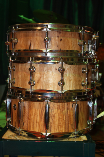 Δευτερη φωτο τα ταμπουρα μου. Απο κατω προς τα πανω. 14x6" αγριελια, 14x5,3" πουρναρι και 14x4.3 πουρναρι.