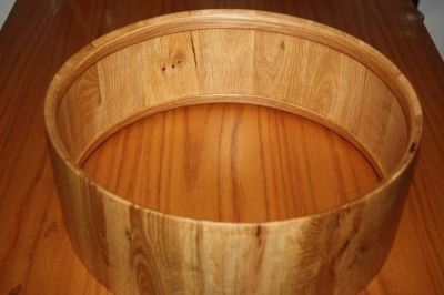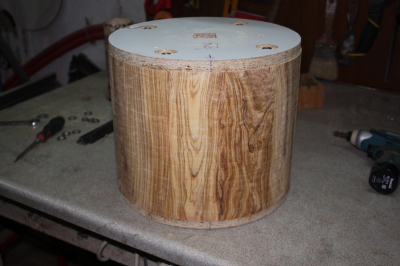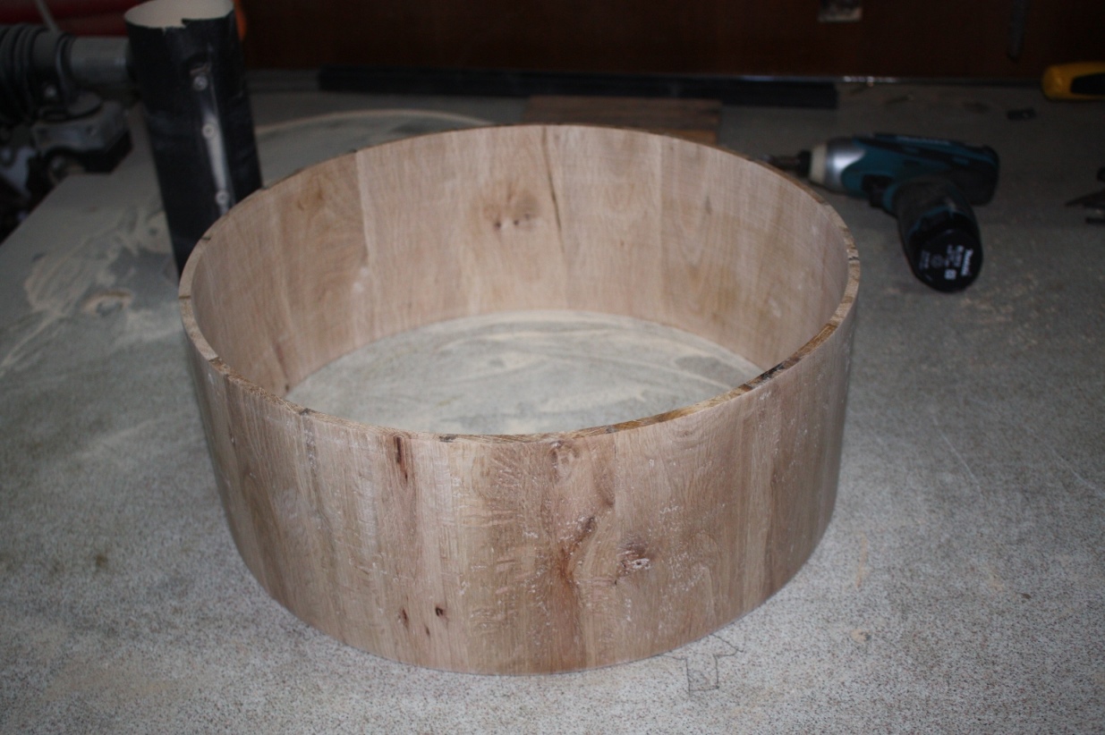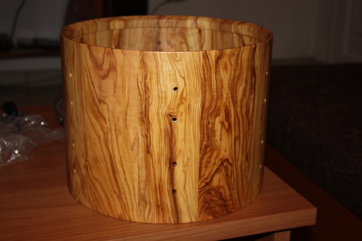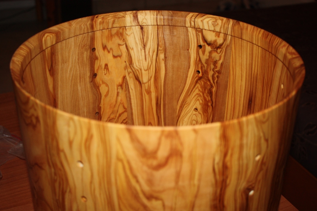 Η κολα που χρησιμοποιω ειναι η Titebond III μαλλον η καλυτερη γι' αυτη τη δουλεια. Οπως ειπα και πριν η μεθοδος μου ειναι η "stave" δλδ κοματια μασιφ ξυλο που θεωρειτε η καλυτερη για τυμπανα μετα τα "solid". Τα τυμπανα που φτιαχνω εχουν παχος κοθρου απο 5mm εως 8mm εκτος αν καποιοςθελει πιο χοντρο. Ο λογος που τα φτιαχνω τοσο λεπτα ειναι οτι θελω να παιρνω οσο το δυνατον περισοτερο τον ηχο του καθε ξυλου μιας και ταλαντευεται καλυτερα οταν ειναι λεπτο. Επισης ενα απο τα προτερηματα της μεθοδου αυτης ειναι οτι τα νερα του ξυλου ειναι καθετα.