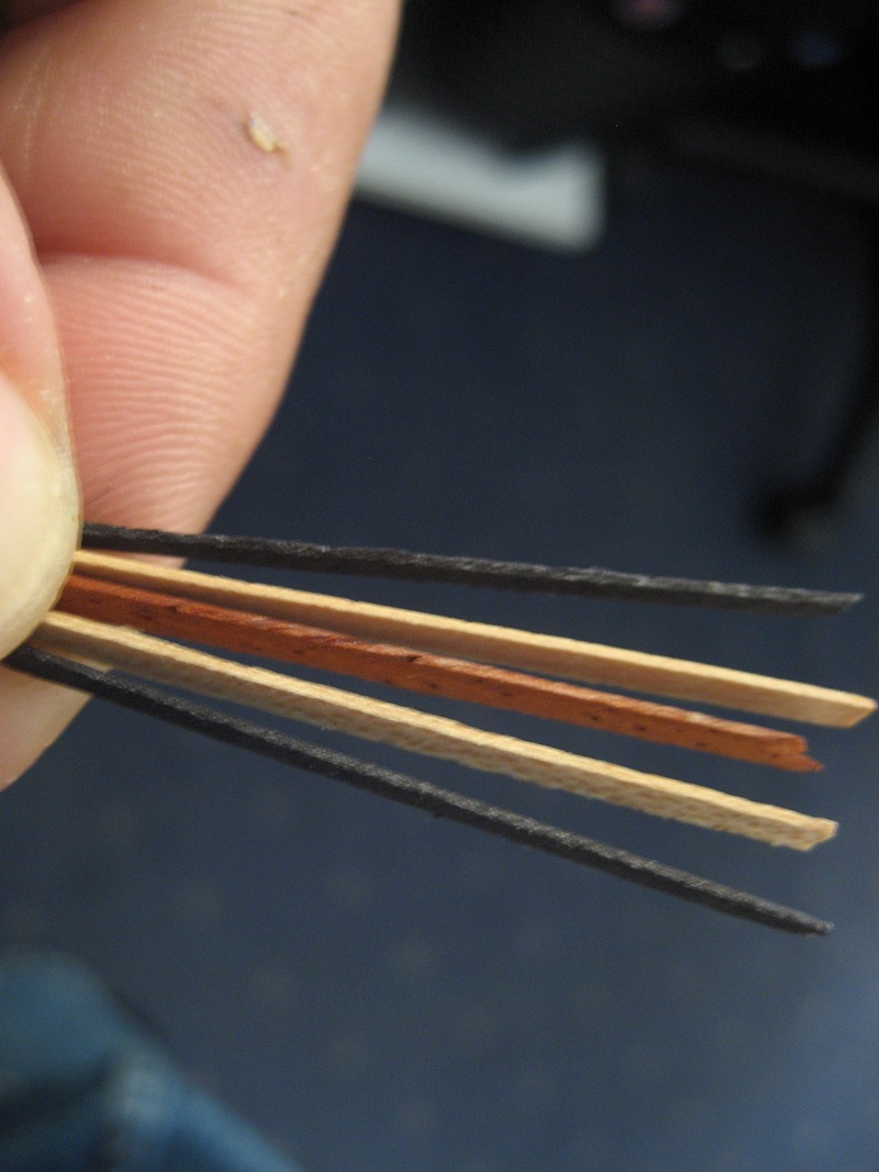 1) Έχω 5 φιλέτα έτοιμα κομμένα (δεν με ενδιαφέρει η περίπτωση να κολλήσω μεγαλύτερα φύλλα καπλαμά και μετά να κόψω το πλάτος που θέλω. Επίσης δεν έχω πρόβλημα λυγίσματος). Πάχος φιλέτων 0.6 mm περίπου, μήκος 80 cm