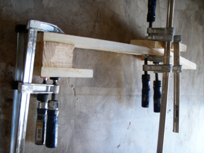 Αυτο λοιπον ειναι αδύνατον να το κοψει κανεις με το χερι χωρις τουλαχιστον ενα πριονι της προκοπης. Ετσι λοιπον το υπολοιπο κομμάτι ξύλου που μου εχει μειενι πηγα και μου το εκοψαν στην μεση για να εχω για δυο μπρατσα και να μην χρειαζεται να φαω 2,5 cm με το χερι. Το εκοψα λοξα (εκανα περιπου 30 λεπτα !!! πανε τα χερακια μου)  >:( >:(  και το ενωσα οπως ελεγε το σχεδιο που ειχα . Νομιζω τωρα οτι ειμαι σε πολυ καλο δρομο.