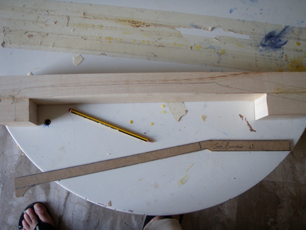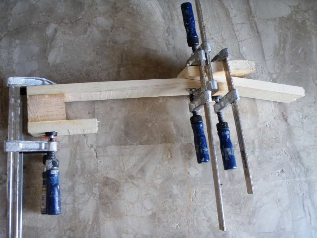 Μετα απο 10 μερες νομιζω οτι αυτη την φορα ειμαι σε καλο δρομο. Πηρα κελεμπεκι 2 κομματια απο Σοφιανο οπου μου βγαζει 4 μπρατσα (χωρις τακους) .30 ευρω για 1,50 μετρο μηκος 7 εκ πλατος και 4,5 παχος.. .Αυτο το εκοψα στους 75 cm μηκος. Το πρωτο κομματι το κατεστραψα γιατι το λαθος που εκανα ηταν οτι προσπαθουσα να κανω μονοκόμματο μπρατσο χωρις ομως να εχω κορδελα ή τουλαχιστον καποιο καλο πριονι.