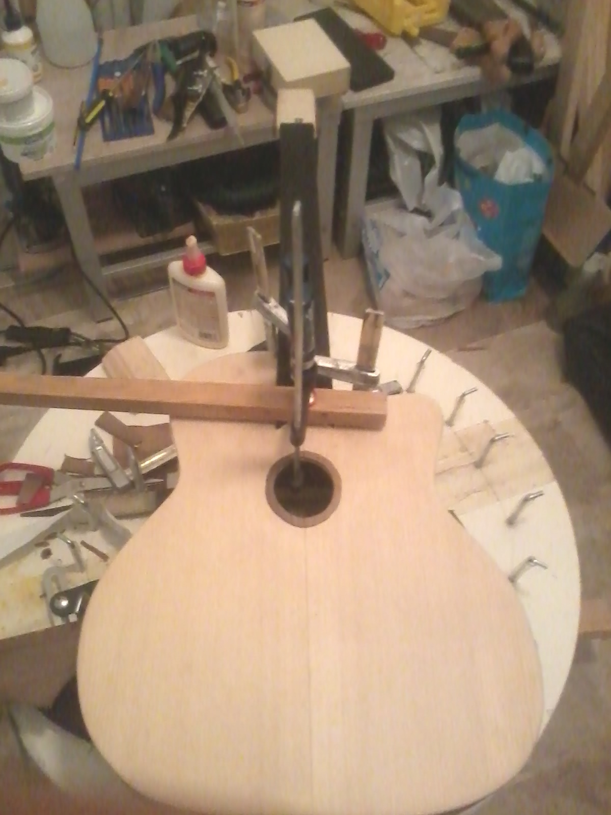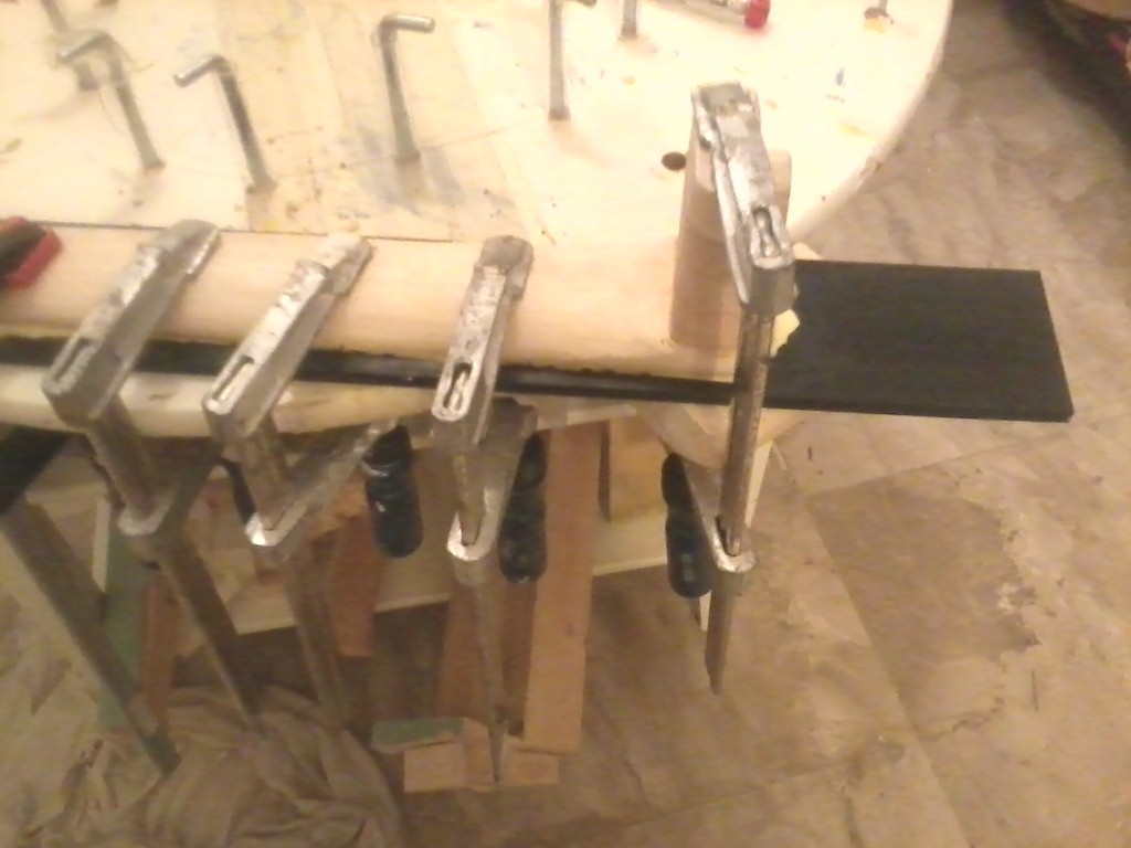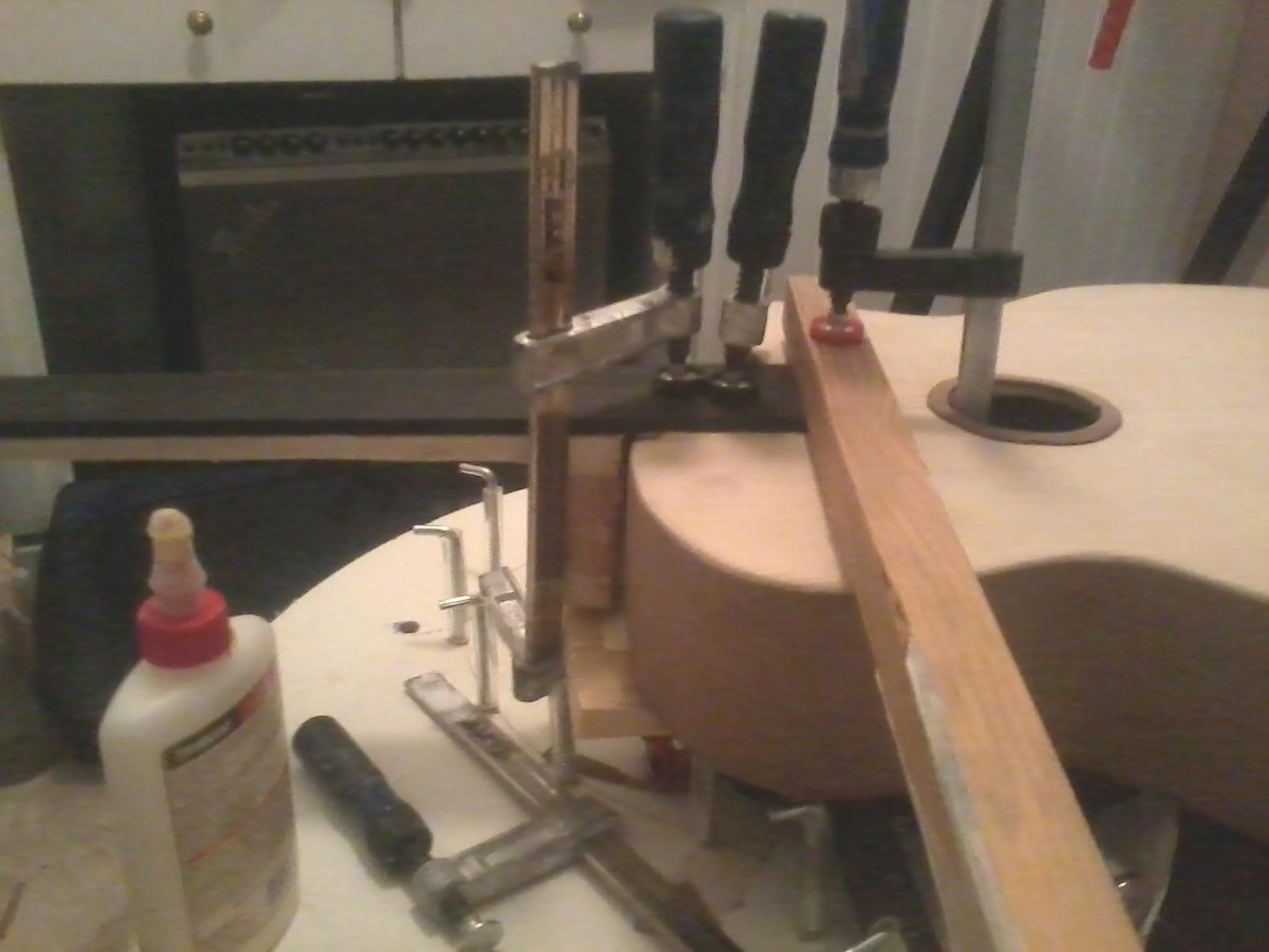 Εφαγα τον εβενο στα πλαγια με το ρουτερ και με την πλανη . Εβαλα το μπρατσο στο σωμα και με 2 καπλαμαδες εδωσα την κλιση που πρεπει να εχει το μπρατσο με το σωμα.Εβαλα τον χαρακα απο την μεση της ταστιερας μεχρι τον καβαλαρη και το υψος βγηκε μια χαρα.Πρωτα εβαλα τους 2 σφικτηρες στο ταστο 14 εως 16 .Στο τελειωμα της ταστιερας ειχε ενα κενο 2 χιλ .Αυτο ηρθε στην θεση του με τον 3ο σφικτηρα. ΑΓΩΝΙΑ !!!! να στεγνωσει η κολλα να δω τι εκανα !!!  ;D