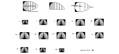 Αφού έχουμε την κάτοψη και το διαμήκη νομέα, σε κάθε σημείο μπορούμε να γνωρίζουμε το αντίστοιχο ύψος και πλάτος του καλουπιού, οπότε μπορεί να σχεδιαστεί η αντίστοιχη τομή όπως μας είχε υποδείξει ο κ. Βασιλειάδης με τη μέθοδο των ευθειογενών καμπυλών.