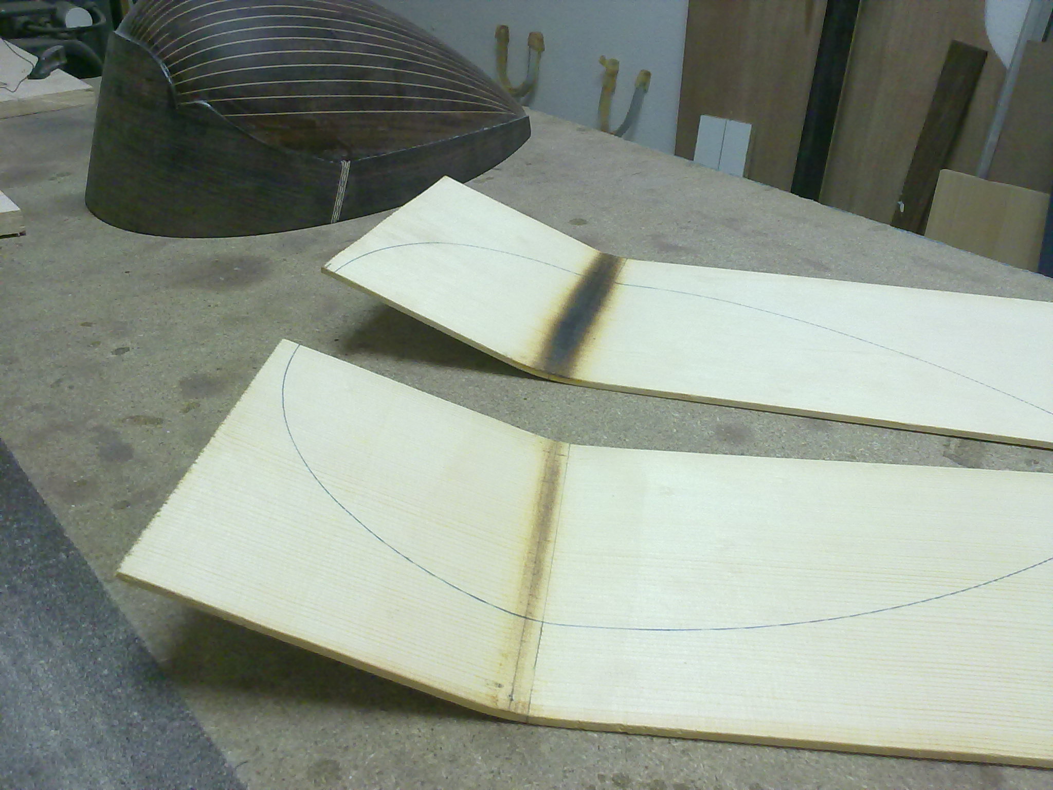 Ξεκινησα ενα νεο μπουζουκι με σκοπο  να μαθω πως γινεται ενα καπακι με κυρτωση  εγκαρσια (καμαρια) αλλα και επιμηκη ή τσακιση.Μικρη ιστορικη αναφορα.Τα καπακια αυτα προερχονται απο το ναπολιτανικο μαντολινο στο οποιο πηραν αυτη την μορφη ,με τσακιση εντονη πισω απο τον καβαλαρη , μετα την εξελιξη του απο λαουτοειδη μορφη  που ειχε .Οι λογοι που ισχυριζοταν οι  Ιταλοι κατασκευαστες του τοτε , ειναι η μεγαλητερη γωνια που σχηματιζαν οι χορδες πανω στον καβαλαρη αρα η μεγαλητερη πιεση αυτου επανω στο καπακι και δυνατοτερος ηχος.Ο δευτερος λογος  και αντιποδας ισως, ειναι οτι οι ατσαλινες πλεον χορδες  ασκουσαν μεγαλη πιεση πανω στο καπακι,συν την επιπροσθετη πιεση που δεχοταν αυτο απο την μεγαλη γωνια των χορδων ,δημιουργησε την ιδεα γι αυτην την τεχνικη , επιρρεασμενη απο την κατασκευη τρουλου και καμαρας, ενα ανθεκτικο συνολο που θα αντιροπουσε αυτην την μεγαλη φορτιση .Προφανως να ισχυουν και σημερα αυτα,θα μας τα πουν οι οργανοποιοι-μελετητες εγχορδων.Σημερα υπαρχει ταση  μειωσης αυτης της τσακισης στα  μαντολινα ,ενω καποιοι κατασκευαστες δεν την εφαρμοζουν καθολου.Για να μεταφερουμε τωρα την συζητηση στα μπουζουκια ,τετοια οργανα φτιαχνοταν προπολεμικα,σχεδον ολα ηταν με τετοια καπακια.Χαρακτηριστικος ηταν ο πριμος  και γλυκος ηχος τους.Τα μπουζουκια του Σταθοπουλου και Μουρτζινου εχουν  καθαρα μαντολινατο σταφος,γενικα ολη η αισθητικη τους ειναι  επιρρεασμενη απο το  μαντολινο.