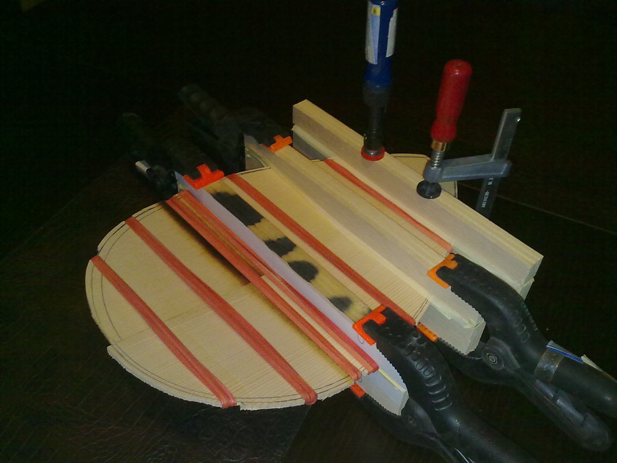 Κολλησα τα δυο λυγισμενα μισα  , τα καθηλωσα με τον τροπο που εδειξα σε προηγουμενη φωτο και πιεστηκαν με λαστιχα