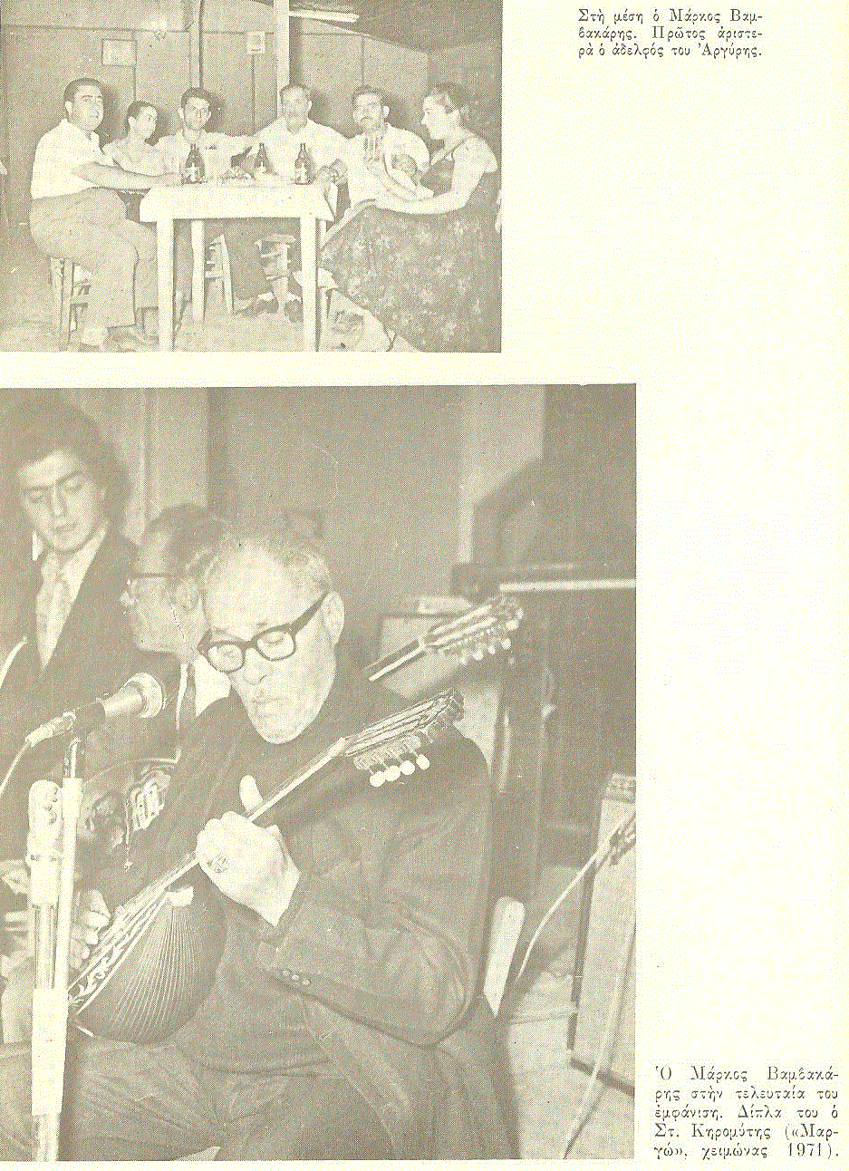 Και μια τελευταια φωτο για σημερα  ο Μαρκος εξω απο το σπιτι του παιζει το μπουζουκακι του. Και στην απο κατω ειναι με την γυναικα του και τον Τασο Σχορελη.