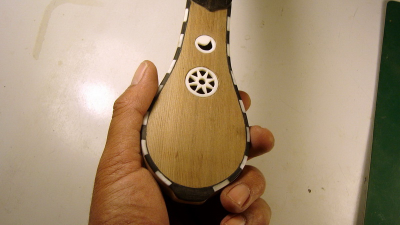 Το αρχικό σχέδιο ήταν λίγο διαφορετικό. Στην πορεία και αφού είχα σχεδόν ολοκληρώσει το εξωτερικό του σκάφους, αποφάσισα να μεγαλώσω τον όγκο του και να ανοίξω δεύτερη τρύπα στο καπάκι.