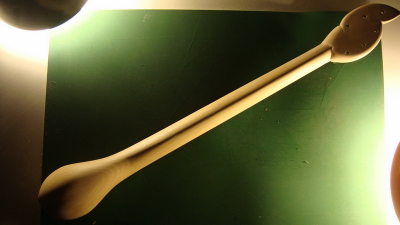 Φάνηκε ότι έπρεπε να γίνουν μικροδιορθώσεις (καβαλλάρηδες και τάστα). Παίζοντας δε, είχα προλάβει να κάνω σημάδια στο καπάκι (γομαλάκα είπαμε), οπότε αποφάσισα να τον ξαναπεράσω γομαλάκα. Η παρακάτω φωτό είναι από εκείνη τη φάση.