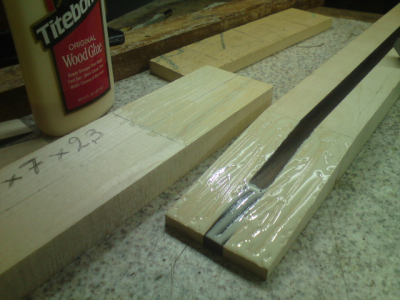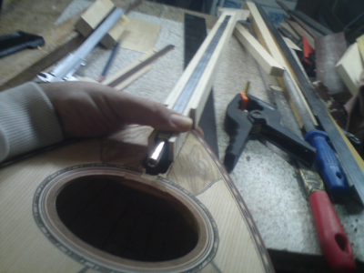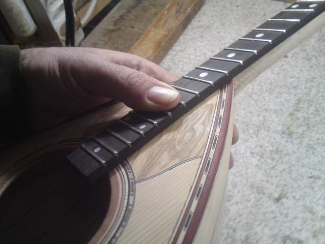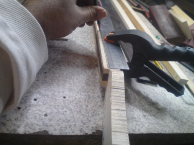 Μετά το πέρασμα των τάστων βέβαια το μανίκι παίρνει την λογική κλίση προς τα πίσω γιατι η βέργα μπαίνει τελείως ξεβιδωμένη στο μάνικο(και εαν και εφ όσον χρειαστεί σφίγγει).Την λογική αυτη κλίση την υπολογίζω εκτων προτέρων στην κλιση που δινω στη φωλιά.