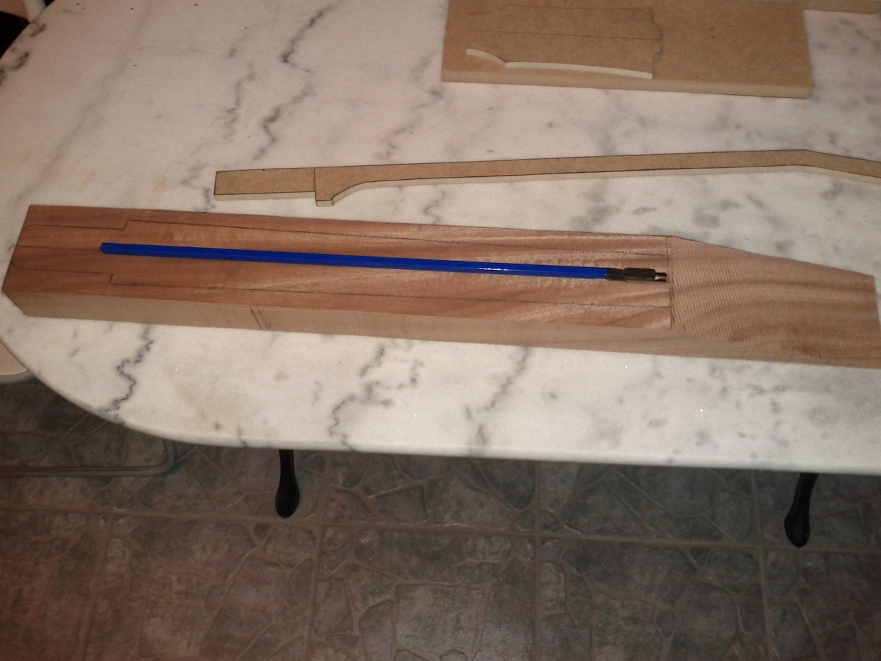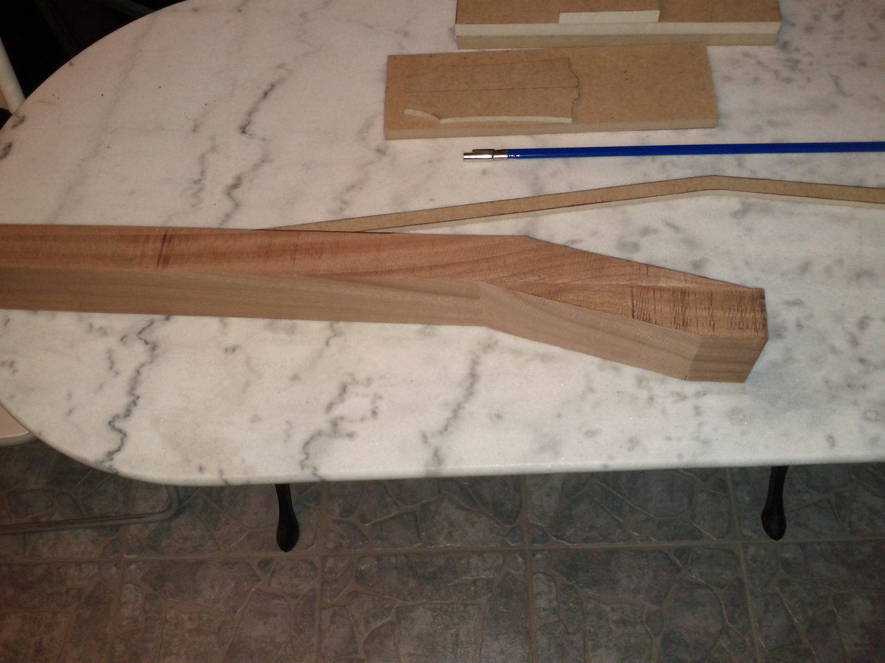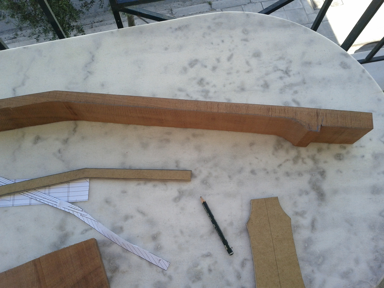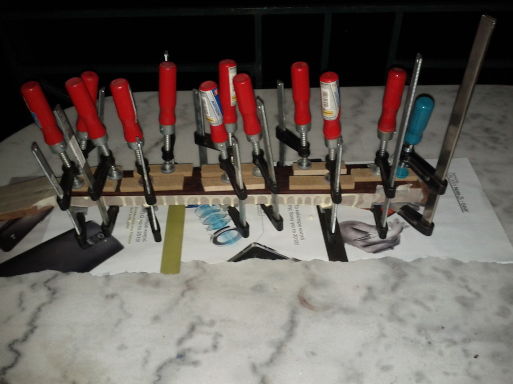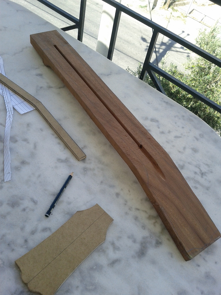 Στελιο ο οδηγος εχει κλιση 14 μοιρες,μετα το κοψιμο με την κορδελα επρεπε να ισιωσω ομοιομορφα την κλειδιερα (headstock).