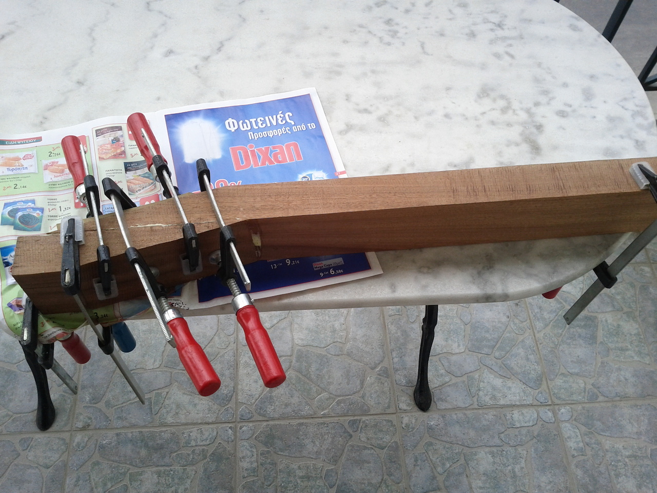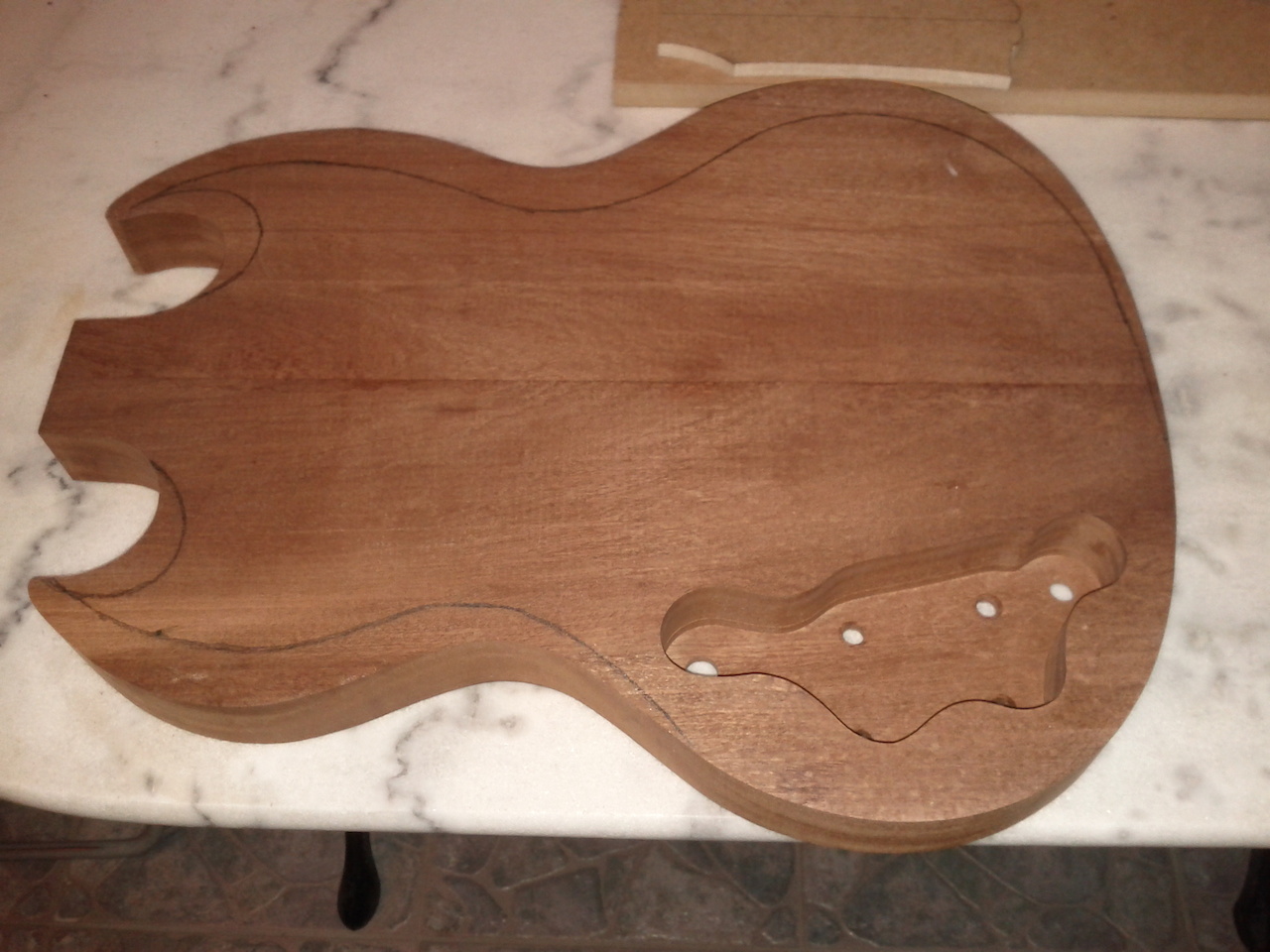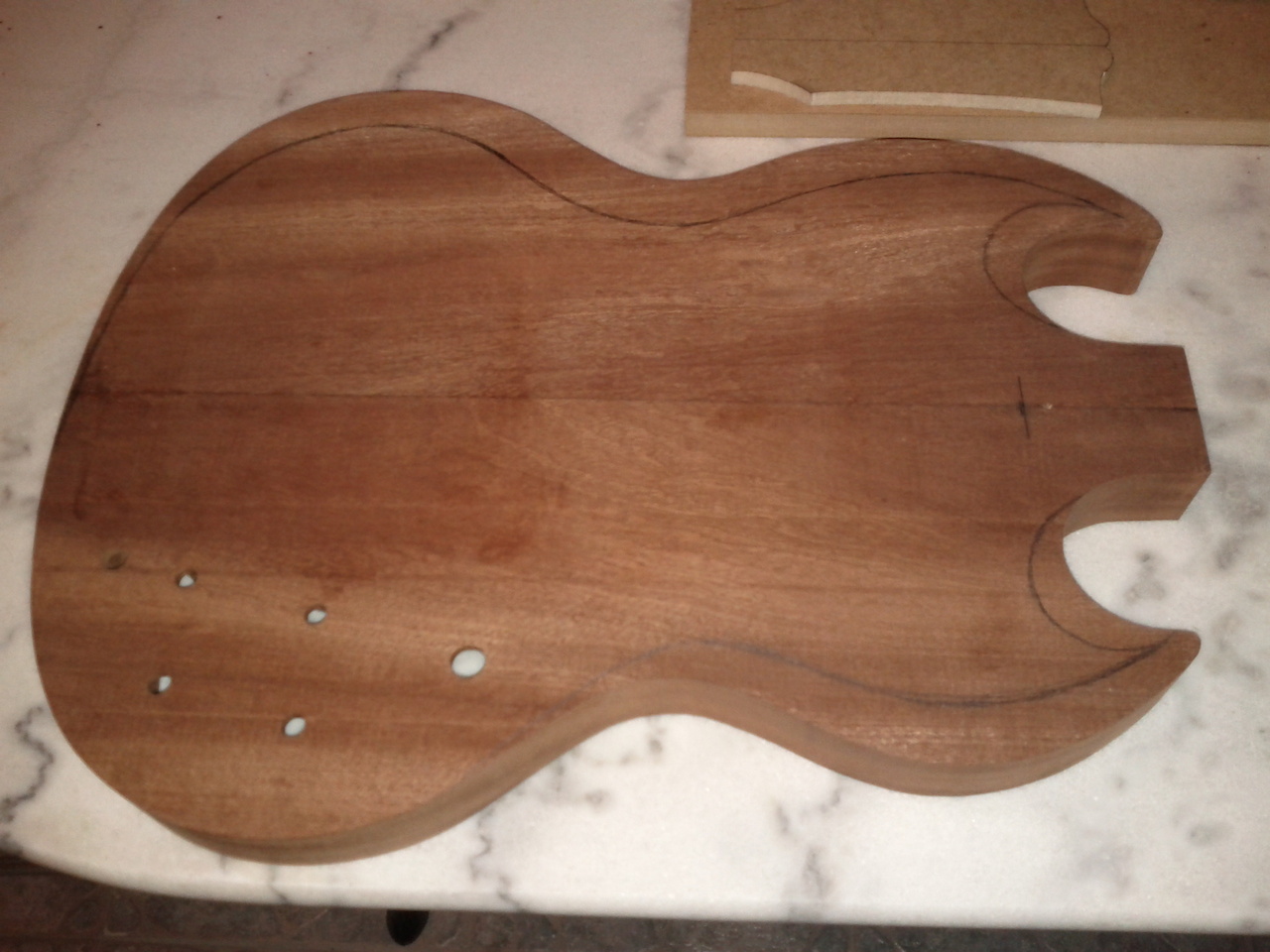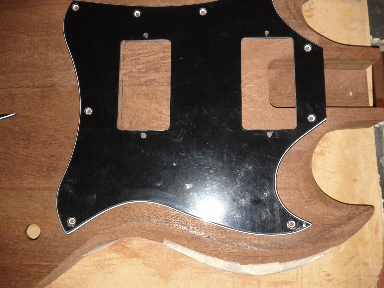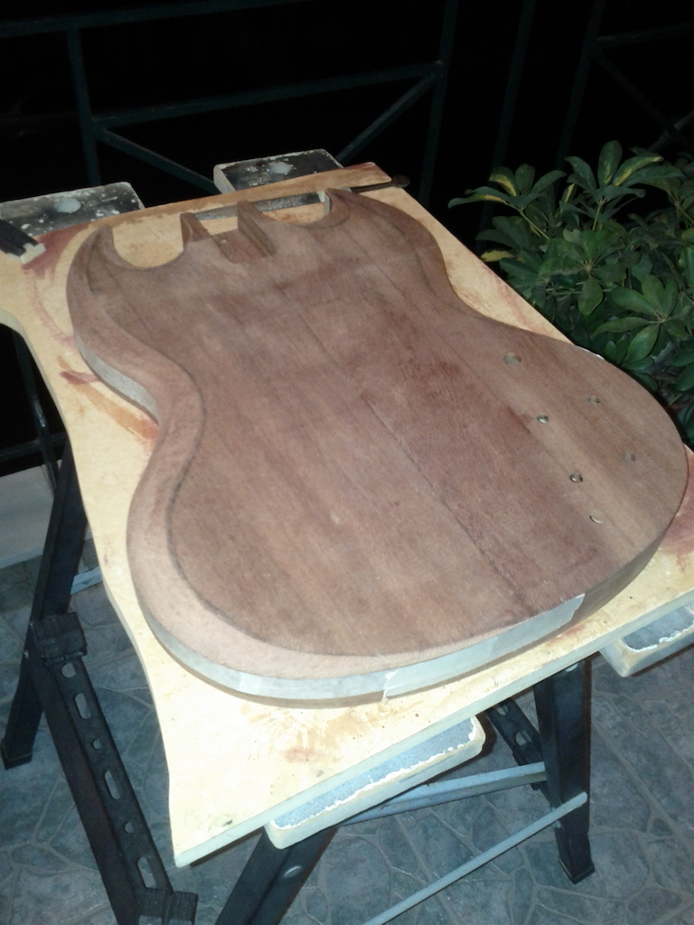 Η κιθαρα αρχικα πηγαινε για Les Paul,αγορασα το μαονι και πηγα στον φιλο μας Πλακιωνη Κωστα για πλανισμα.Εκει εγινε το λαθος,αντι για 45mm του ειπα 35mm.