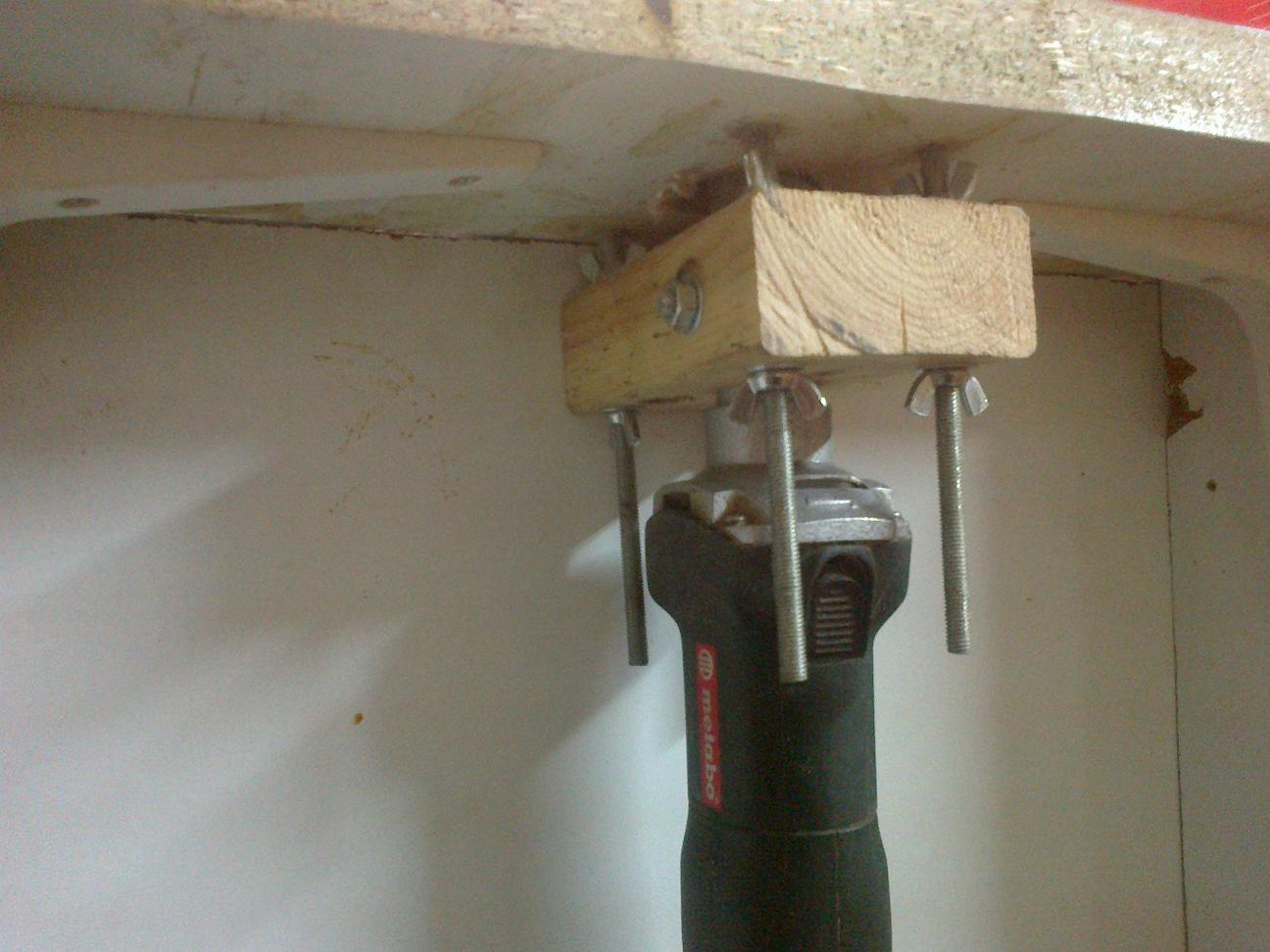 Ωραία και μάλλον γρήγορη κατασκευαστικά λύση αυτή με τις ντίζες αλλά απαιτεί το ρούτερ να είναι ως επί των πλείστων αφιερωμένο στον συγκεκριμένο πάγκο οπότε για χρήση με ελεύθερο χέρι χρειάζεται άλλο μηχάνημα. Για τέτοια, πιο μόνιμη λύση είχα δει αυτή την κατασκευή:
