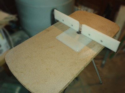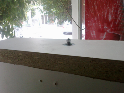 Η βασική σανίδα είναι κομμάτι "ντουροπάλ", περίσσευμα από τοποθέτηση κουζίνας ενώ η λευκή τετράγωνη επιφάνεια στη μέση είναι επιφάνεια κοπής από ΙΚΕΑ.