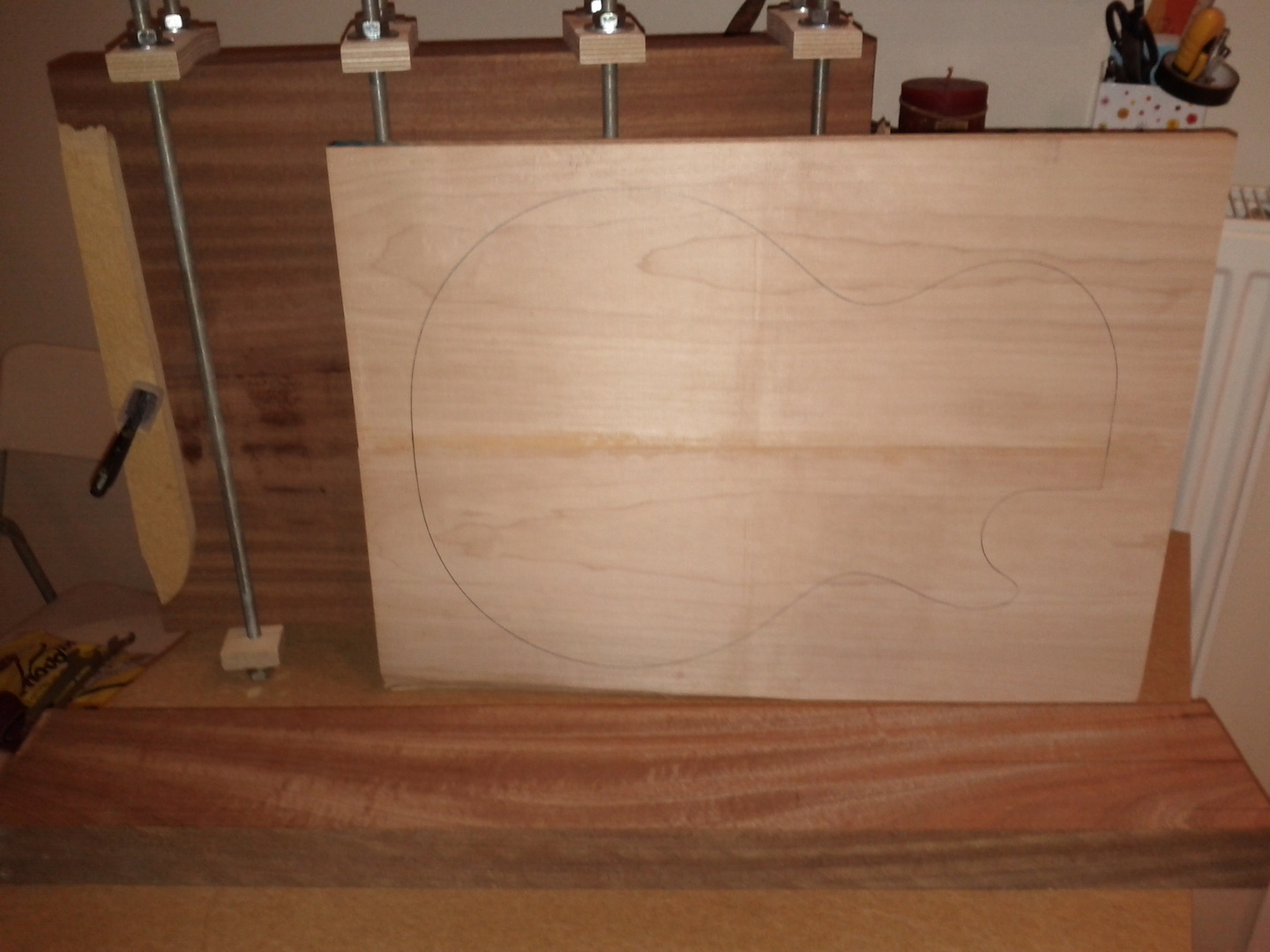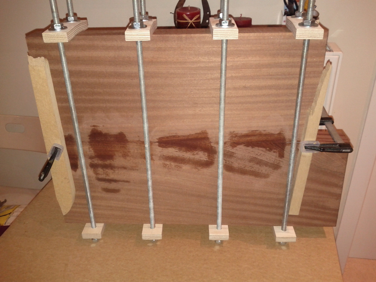 στην ενωση των κομματιων αφου βαλεις κολλα κ κολλησεις τα κοματια, μετα στο ξεχιλισμα της κολλας μπορεις να βαλεις ενα κομματι ναυλον (ή εφημεριδα) κ μετα να βαλεις το ξυλο που θα σφιξεις, για να μην παιδευεσαι στο καθαρισμα μετα, ή σου κολλησει το ξυλο στην ενωση...