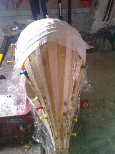 Συνεχισα και τελειωσα το σκάφος του Μπουζουκιού. Πέρα απο την ελλειψη χρόνου και της θερμανσης στο εργαστήρι, είχα και άλλα απρόοπτα. Οταν κόλλησα τα παραπέτια, την νύκτα έπεσε το ταβάνι να μου χαλάσει το όργανο, αλλα ευτυχώς οι σοβάδες σκάσανε λίγα εκατοστά δίπλα απο το σκάφος, που ήταν εκεινη την ώρα στη μέγγενη.  Είπαμε περα απο χαρές εχει και τα απρόοπτα αυτη η τέχνη, αλλα όχι κι ετσι!  Θα το τρίψω, θα το ξεκαλουπώσω και θα ανεβασω φωτογραφίες τις επωμενες ημέρες. Μεχρι στιγμης είμαι ικανοποιημένος μιας και η εφαρμογή στις δουγιες είναι πολύ καλή, αλλα και η κολάτζα που την φοβόμουν έστρωσε πολύ καλα μετα απο πολυ κόπο. Δεκτή κάθε παρατηρηση και συμβουλή...