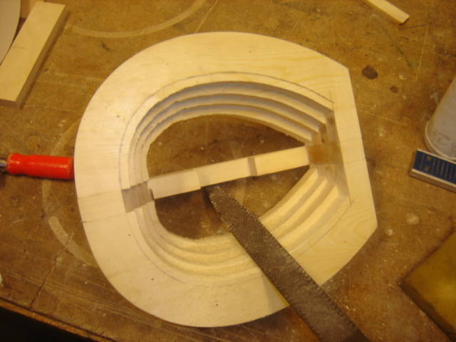 φωτο 7): Χτίσιμο του καλουπιού μέχρι εκεί που θα γίνει εσωτερικά κούφιο το καλούπι, και στρώσιμο με την ράσπα