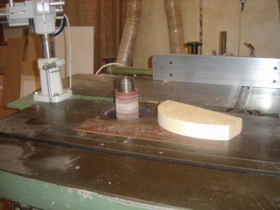 φωτο 5): Καθάρισμα των κομματιών στην σβούρα στον τάκο με το γυαλόχαρτο(αυτή η διαδικασία για όσος δεν έχουν σβούρα η router table γίνετε στο χέρι με ράσπα και πιστέψτε με έχει καλύτερα αποτελέσματα άπλα είναι χρονοβόρα διαδικασία, πότε μην επιχειρήσετε με σκέτο router