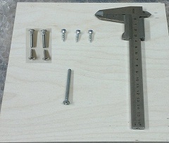 Υλικά : Ένα κοινό αναλογικό παχύμετρο (τελικώς κάνει και το ψηφιακό) με κλίμακα μέτρησης το πολύ 16 εκ, κοντραπλακέ καλής ποιότητας (προτείνεται κοντραπλακέ από σημύδα Ρωσίας, Φινλανδίας ή Λετονίας και σε καμία περίπτωση Κίνας) διαστάσεων 21 χ 25 πάχους 18 χιλ. εκ. ή παχύτερο, μία σταυροκατσαβιδόβιδα Μ4 μήκους 50 χιλ.και μερικές νοβοπανόβιδες μήκους 18 χιλ. ή βίδες σύνδεσης ντουλαπιών (είναι καλύτερες).