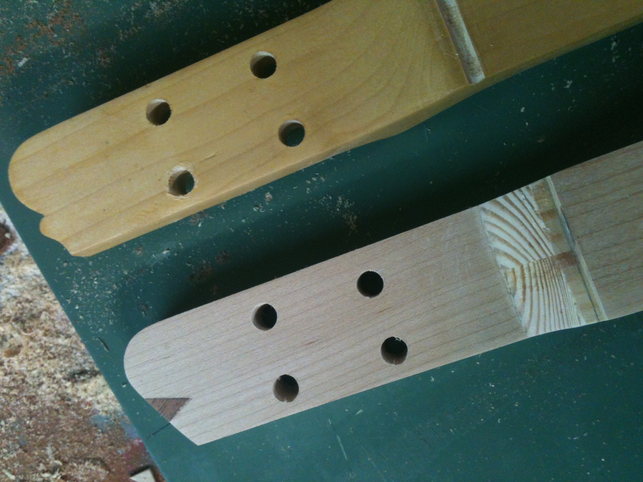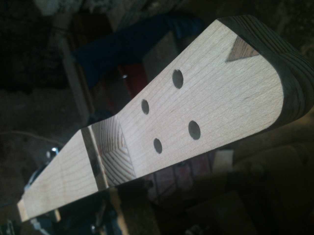 το μπρατσο ειναι spruce η ταστιερα maple, οπως και το φιλετο στο headstock...επι τη ευκαιρια σχεδιασα και καινουριο headstock... ;D...πιο μινιμαλ και με πρωτη αποπειρα για inlay απο μαονι...δεν ειναι ασχημο!!! ;D