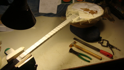 πέρασα τάστα και μαρτύρησα: είχε τάστο 0,5 με δόντι και άλλες αντί άλλων χαρακιές (πάχη): έβαλα μια ποικιλία τάστων από 0,6 έως 0,8. Μόλις κούρδισα ήρθαν όλα και έσφιξαν.