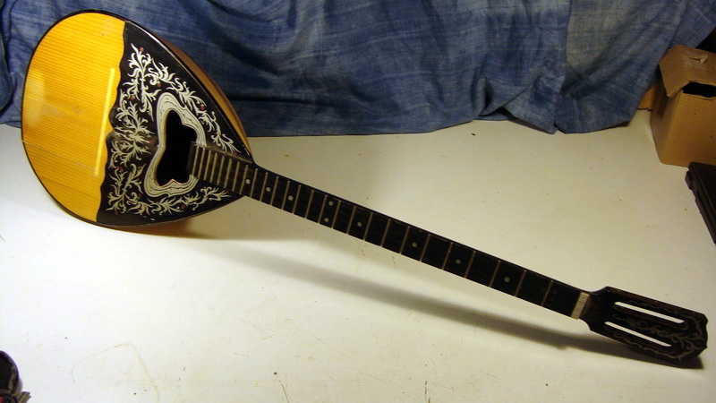 ο φίλος και γείτονας (έναν και μοναδικό έχω, γείτονα - όχι φίλο) μου έφερε αυτό - που το βρήκε ούτε κι ό ίδιος θυμάται - για να προσπαθήσουμε να το συνεφέρουμε. Ο ίδιος δεν παίζει, απλώς θέλει να του βρίσκεται μπουζούκι μάχιμο. Αφού είδε τα δικά μου από κοντά (τρίχορδα όλα) κάτι του γύρισε και αποφάσισε να το κάνουμε και αυτό τρίχορδο.