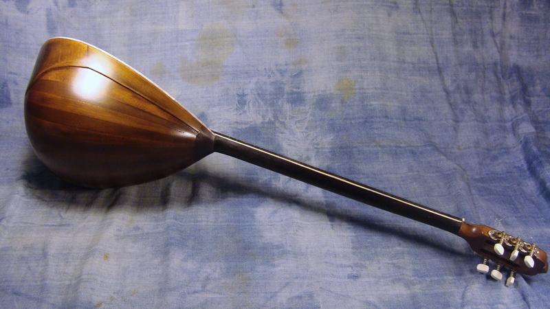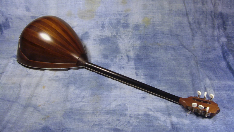 - ο ξυλουργός του χωριού όπου το πήγα για βερνίκι πολυουρεθάνης (φίλος του ιδιοκτήτη) αυτοσχεδίασε και έβαψε σκάφος και μανίκι με ένα γλυκό καφέ – σοκολατί το οποίο ναι μεν δεν με “χαλάει” σαν χρώμα, αλλά τα έκανε όλα ίδια. Δεν ξεχώριζαν τα διάφορα μέρη του οργάνου και αυτό δεν μου άρεσε καθόλου. Έτσι αποφάσισα να τρίψω και να ξαναβάψω (μαύρο) το μανίκι, το οποίο τελικά πέρασα με clou500άρι.