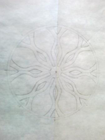 Στο ειδικο χαρτι που λεγαμε σε άλλο θεμα... σχηματισα τον ιδιο κυκλο με τις ωκτο ακτινες. Το τοποθετησα πανω στον αρχικο σχεδιο, ετσι ώστε να συμπιπτουν μεταξυ τους. Αφου πρωτα διαλεξα ποια απο τις δυο πλευρες του σχεδιου μου είναι πιο καλα σχηματισμενη, την αντεγραψα στο ημιδιαφανο χαρτι. Το ιδιο εκανα και στις υπολοιπες ακτινες περιστρέφοντας μονο το ένα χαρτι κατά μια θεση κάθε φορα, και αφου παντα τσεκαριζα ότι συμπιπτουν ολες οι ακτινες μεταξυ τους. Ετσι φτασαμε εδώ
