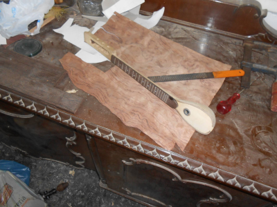 Σημερινές εργασίες:τοποθέτηση τάστων,τρύπημα κλειδιών,τριψίματα,αύριο πάλι.