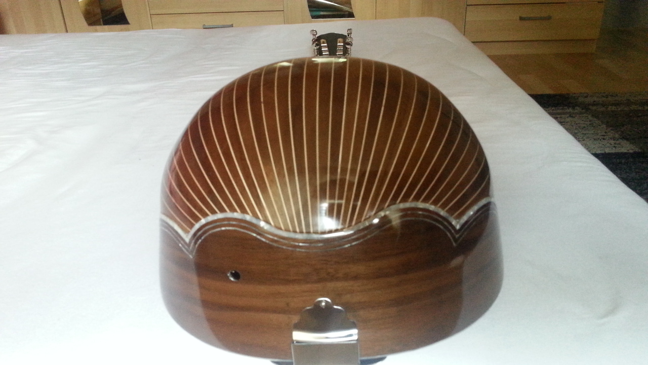 Αυτό είναι το δεύτερο μου σκάφος. Είναι το δεύτερο όργανο που φτιάχνω και είναι τετράχορδο μπουζούκι. Το πρώτο μου όργανο ήταν μπαγλαμάς με δούγιες και δεν τα είχα πάει καλά με την συμμετρία των δουγών.