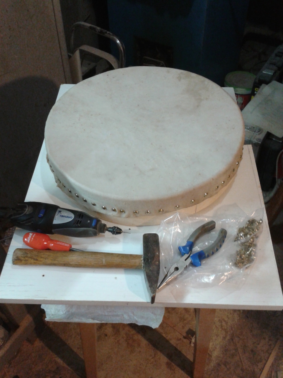 Συνεχίζω να επιμένω στην κατασκευή μουσικών οργάνων που είναι εκτός των συνηθισμένων αναρτήσεων, και βέβαια ούτε πλησιάζουν τα ακουστικά και αισθητικά θαύματα που έχουν αναρτηθεί εδώ αφού αυτά που φτιάχνω είναι, μάλλον προτόγονα, κρουστά. Παρ' όλ΄ αυτά είπα να μοιραστώ τον κόπο που κατέβαλα και τις σημαντικότερες εμπειρίες που αποκόμισα καθώς έφτιαχνα ένα frame drum. Πρόκειται για ένα είδος ντεφιού αλλά το δικό μου χωρίς τις ζίλιες. Το τελικό αποτέλεσμα λοιπόν: