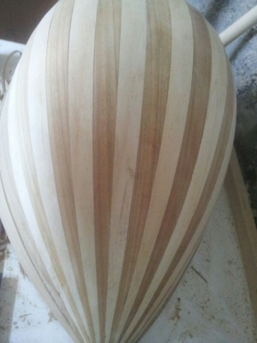 Ευχαριστω για τα καλα σας λογια αλλα υπαρχουν ατελειες που δεν φαινονται στις φωτο. Εχθες λοιπον ετοιμασα τα πραγματα για να κολησω το μανικο και για το χαρτωμα του σκαφους. Ηρθε και ενας πιτσιρικας να με βοηθησει στο εργαστηριο. Την ωρα λοιπον που εκοβα το χαρτι εριξε το σκαφος απο τον παγκο και η ζημια εγινε! Αφου κοιταξα το σκαφος καλα ειδα ενα ραγισμα σε μια δουγα κοντα στον μπροστα τακο. Αφου διαβασα την ολη Αγια Γραφη με το προθεμα γαμω μπροστα εβαλα  κολλα και το κολησα οσο καλυτερα γινοταν για να μην το ξηλωσω. Αποφασισα να συνεχισω διαφορετικα στην αρχη ειχα φτιαξει ενα μανικο με πολυ μεγαλη κλιση στο καραολο περιπου 20 μοιρες και απο την μια μερια ειχα φαει περισοτερο το πλαινο ξυλο. Οταν το ειδε ο κυριος Ανδρεου με προετρεψε να φτιαξω καινουριο οπως και εκανα. Οταν ειδα το ραγισμα λοιπον αποφασισα να βαλω αυτο για να μου μεινει το καινουριο για την επομενη κατασκευη.Το κολησα λοιπον χαρτωσα το σκαφος και ετοιμαζω το καπακι το οποιο επελεξα να ειναι απο κεδρο. Φωτο αυριο που θα ειμαι στο σπιτι.