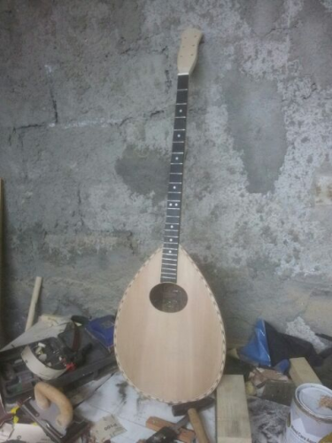 Μετα απο αρκετο καιρο ασχοληθηκα και παλι με την κατασκευη του τριχορδου ετσι λοιπον εχθες και σημερα χαραξα και κολλησα την ταστιερα περασα και ετριψα τα ταστα κολλησα τσαμπουκαδες διαμορφωσα το μανικο και κολλησα τον ζυγο. Αυριο ελπιζω να βρω χρονο και να διαμορφωσω τον καβαλαρη για να αρματωσω επιτελους για να παρω αυτι τι γινεται μηπως χρειαστει να ξανατριψω ταστα. Μετα σειρα εχει το βαψιμο και εδω θα ηθελα την γνωμη σας, σκεφτομαι να το περασω teak oil εαν εχετε κατι αλλο στο νου σας προτεινετε ελευθερα. Περιμετρικα στο καπακι εχω κολλησει ξυλινο φιλετο και σκεφτομαι να το αφησω εντελως αδειο απο αλλες φιγουρες και σχεδια μιας και παντα μου αρεσαν τα "αδεια" οργανα που το ξυλο δειχνει την φυσικη του ομορφια. Μπορει βεβαια ντην ηχητικη οπη να κολλησω ενα καπλαμαδακι.