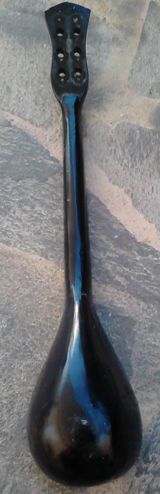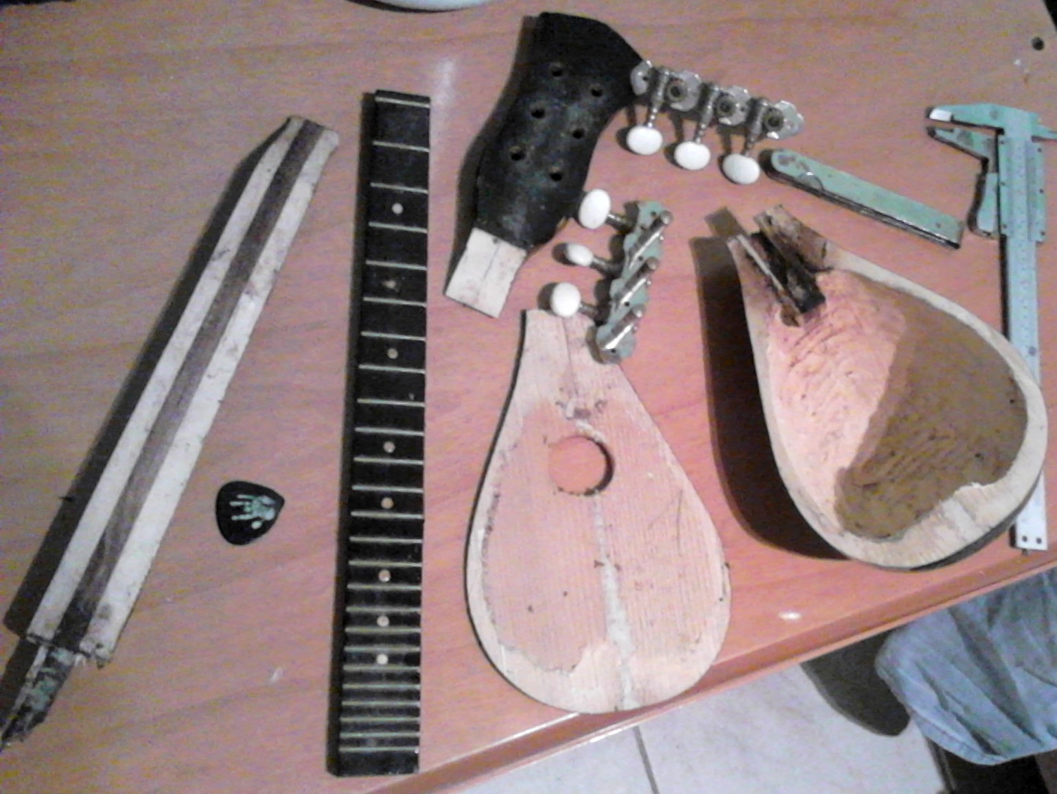 Καλησπερα!! μετα απο το δευτερο οργανο που εφτιαξα, ειπα να μπω κ στα βαθια..κανοντας μια επισκευη στο πρωτο οργανο που απεκτησα..περιπου το 1993-94...ειναι ενα μπαγλαμαδακι 36 εκ. κλιμακα...κ ειναι το κλασσικο "της σειρας" με το πανω κοκκαλο χαραγμενο μεχρι το "κοκκαλο" κ ενα ταστο που χρησιμοποιειται σαν αρχη της χορδης...τα περιεργα ειναι τα εξης...η ταστιερα ηταν παχους 9 mm και το καπακι (δε ξερω για ποιο λογο) σε καποια σημεια ηταν 3 mm κ εφτανε τα 5 και για καβαλαρη ειχε ενα τραπεζοειδες ξυλο μ ενα ταστο χαραγμενο πανω...υψος χορδης δε το συζητω.....Εμεινε για χρονια κουρδισμενο..με αποτελεσμα..ραγισε η ενωση στο καραολο κ η ενωση στο μανικι....και το καπακι εκατσε.....Σημερα εκατσα κ το ξηλωσα ολο..θα αφηνα το μανικι πανω..αλλα ηταν ραγισμενο σ ενα σημειο και οταν εβγαλα το καπακι παρατηρησα οτι η χελιδονοουρα ηταν απλα ενα τετραγωνο, 15Χ15 και το σκαφος μεσα ηταν φαγωμενο λες και το κανανε με καλεμι... για αρχη λεω να περιποιηθω το εσωτερικο του σκαφους μεχρι να γινει λειο και να  γεμισω με ξυλο σε ακριβεις διαστασεις το μορσο, και να κοψω τη χελιδονοουρα εκει....οριστε και καποιες φωτογραφιες...   :o