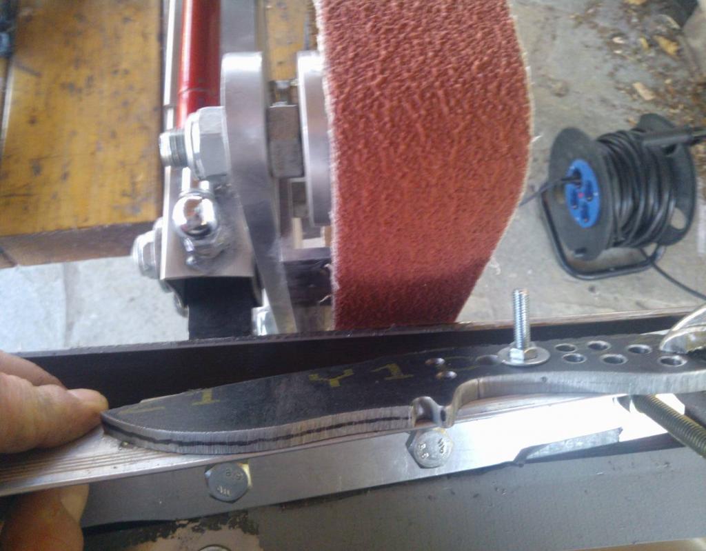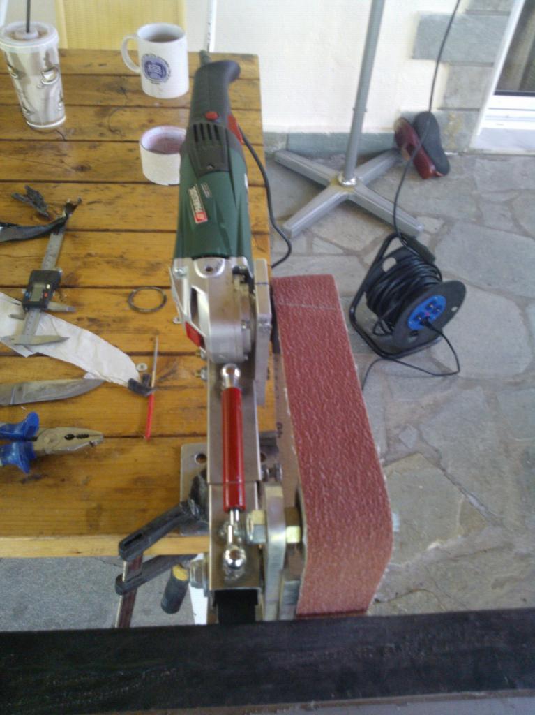 Έχω ένα ταινιολειαντήρα ιδιοκατασκευή που δουλεύει με γωνιακό τροχό pws 125 A1 , 1200w από το lidl , με ροοστάτη στροφών και είναι δοκιμασμένος σε επεξεργασία σκληρών μετάλλων (στις υψηλές στροφές) αλλά και ξύλων (στις χαμηλές στροφές) . Είναι σχεδόν καινούριο , το πουλάω γιατι θέλω κάτι πιο εξειδικευμένο για μαχαίρια . Το μηχάνημα μου στοίχισε 280 ευρώ εγώ το δίνω 180,00ευρώ μαζί και καμιά δεκαριά ταινίες διαφόρων grit .Χωρίς το τροχό 150,00 .