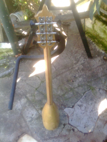 Λοιπόν ακόμα ένα όργανο τελείωσε, έχουμε και λέμε, είναι σκαφτό από μουριά, το μανίκι είναι λίμπα λευκή με μια κόντρα μέσα, το καράολο είναι ιρόκο και η ταστιέρα με τον καβαλάρη είναι καρυδιά Ελληνική, το καπάκι έλατο και τα κλειδιά είναι από παλιά κιθάρα, όλο το όργανο είναι φτιαγμένο από ξύλα που περίσσεψαν από προηγούμενες κατασκευές, μόλις διορθώσω και το προβληματάκι με την χορδιέρα θα είμαστε εντάξει, χρωστάω ήχο τον οποίο και θα ανεβάσω σύντομα και ακόμα μια παρουσίαση του μπαγλαμά καρύδα που έχω τελειώσει αλλά δεν έχω ακόμα χορδές.φωτογραφίες………