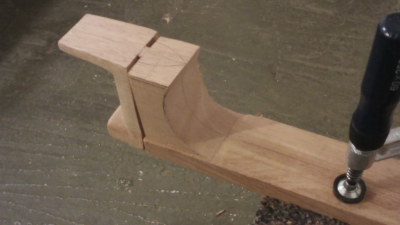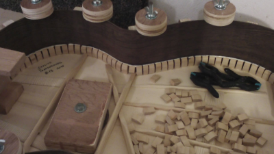 διαμορφωση τακουνιου-χεριου, ισως η πιο δυσκολη διαδικασια, που αφορα και την ευσταθεια του οργανου...κολλημα χεριου στο καπακι, κολλημα πλαϊνων και κερφινγκ...