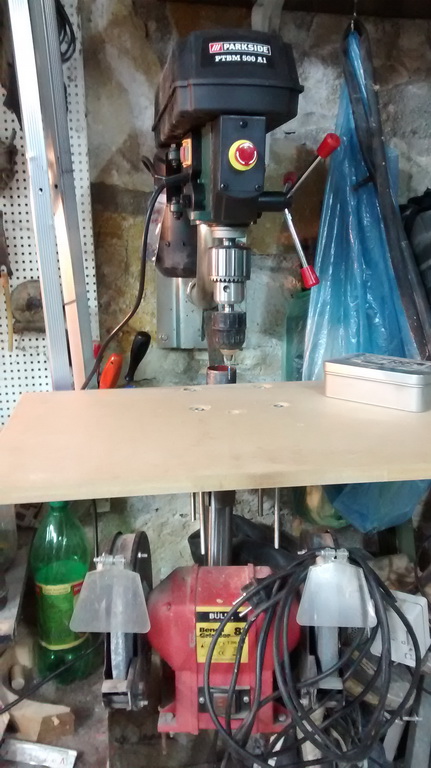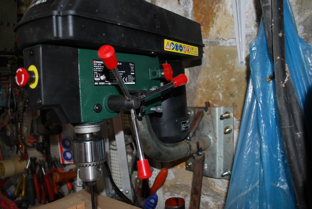 Για όσους έχουν πάρει το κολωνάτο από τα Lidl και όχι μόνο. Γενικά η λύση για αυτούς που θέλουν να αυξήσουν την απόσταση κολώνας-τσοκ. Η λύση είναι μια βάση για δορυφορική κεραία βιδωμένη στον τοίχο και μια έξτρα βάση για την κολώνα που είχε το δράπανο και την χρησιμοποιούμε μόνο για τον πάγκο εργασίας. Ο σφιγκτήρας που έχω πάνω σε αυτή την βάση είναι μόνο για να ''δέσει'' το πάνω μέρος του δράπανου με το κάτω. Καλή επιτυχία. stelecaster.blogspot.gr